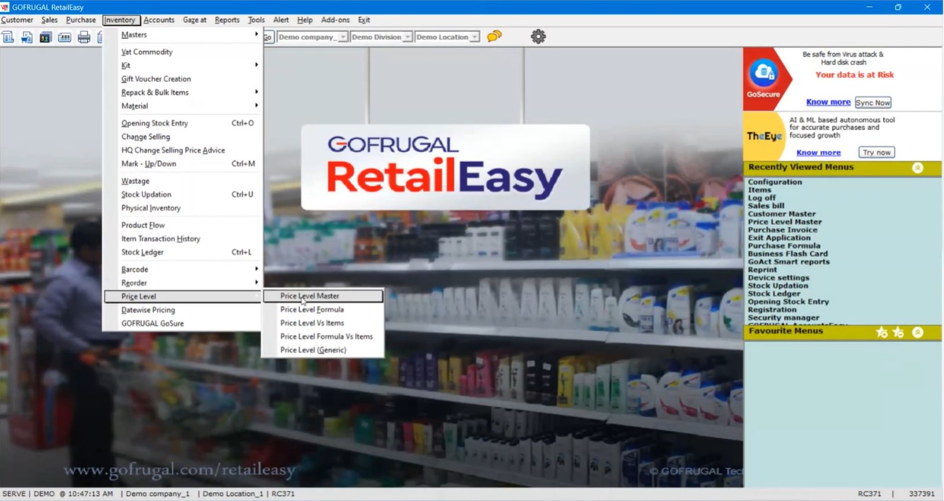 Step 7: Go to Inventory > Price Level > Price Level Master