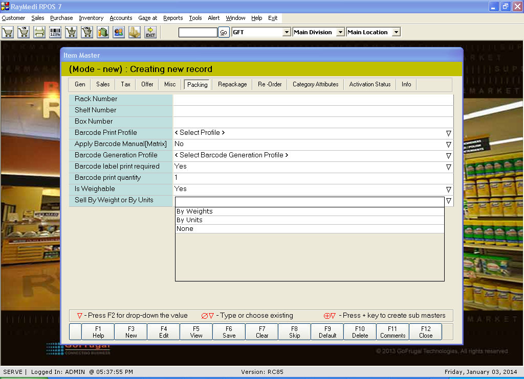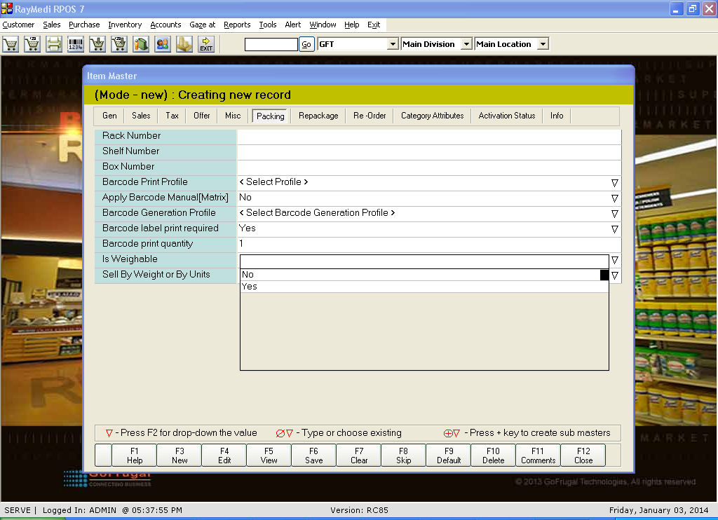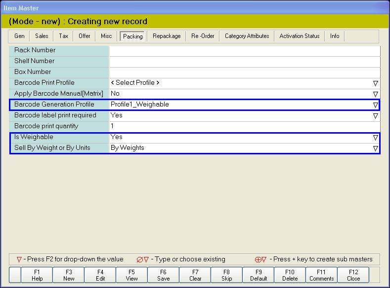 4. In the Is Weighable field, press F2 key to select from the below options:
