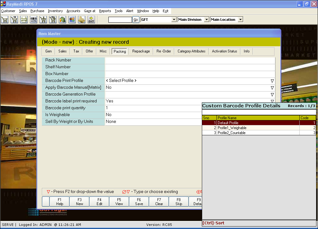 3. In the Barcode Generation Profile field, press F2 key to select the barcode profile from the Custom Barcode Profile list.