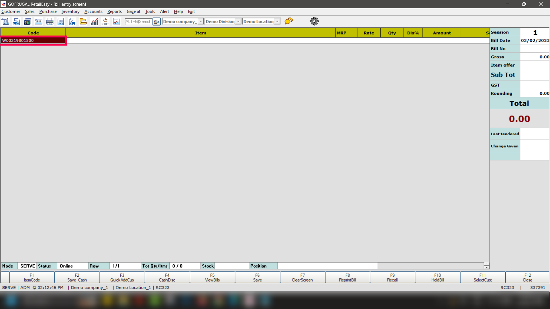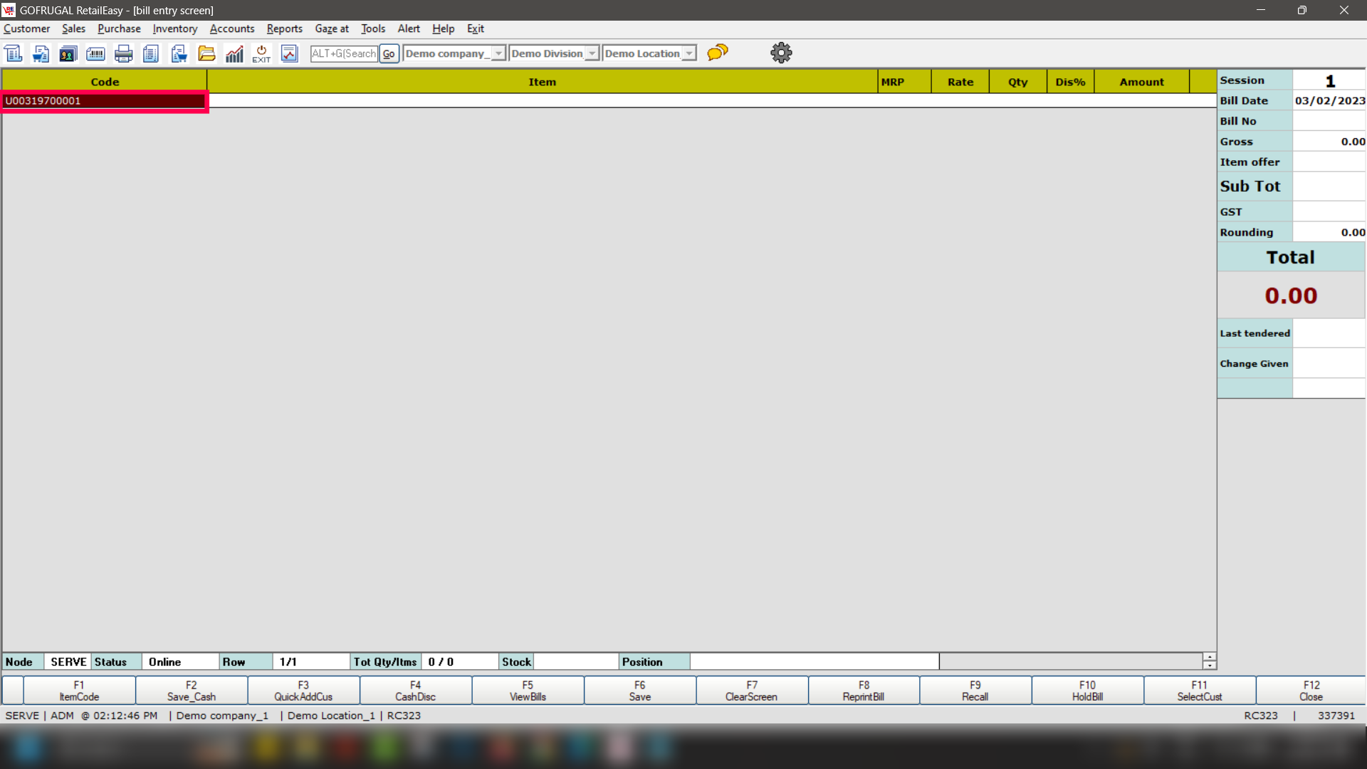 Note: After pressing the enter button, the item will be loaded automatically and the Qty will become 01.500 [1KG & 500 Gram]