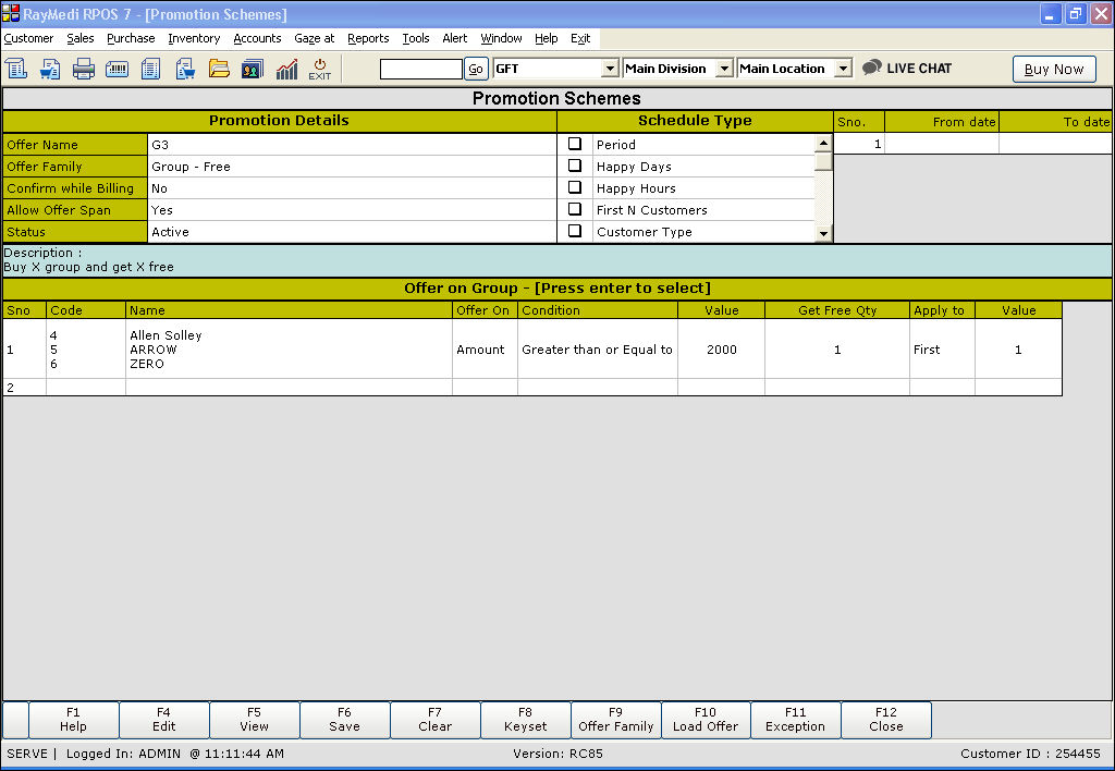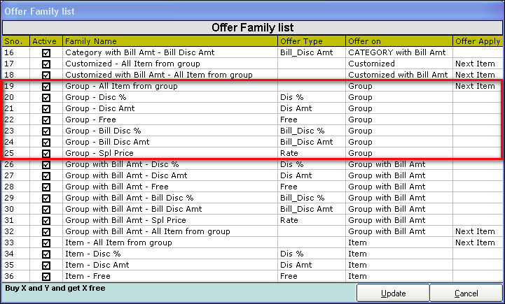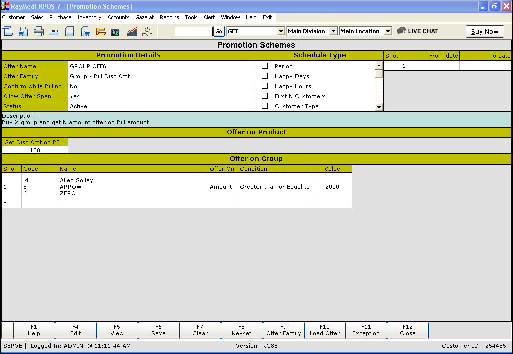 6. Group - Bill Disc Amt (To offer N amount discount on the total bill amount on selling X group)