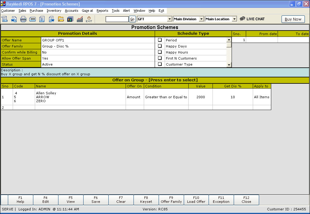 4. Click Save to save the offer.5. Creating Group - Bill Disc%