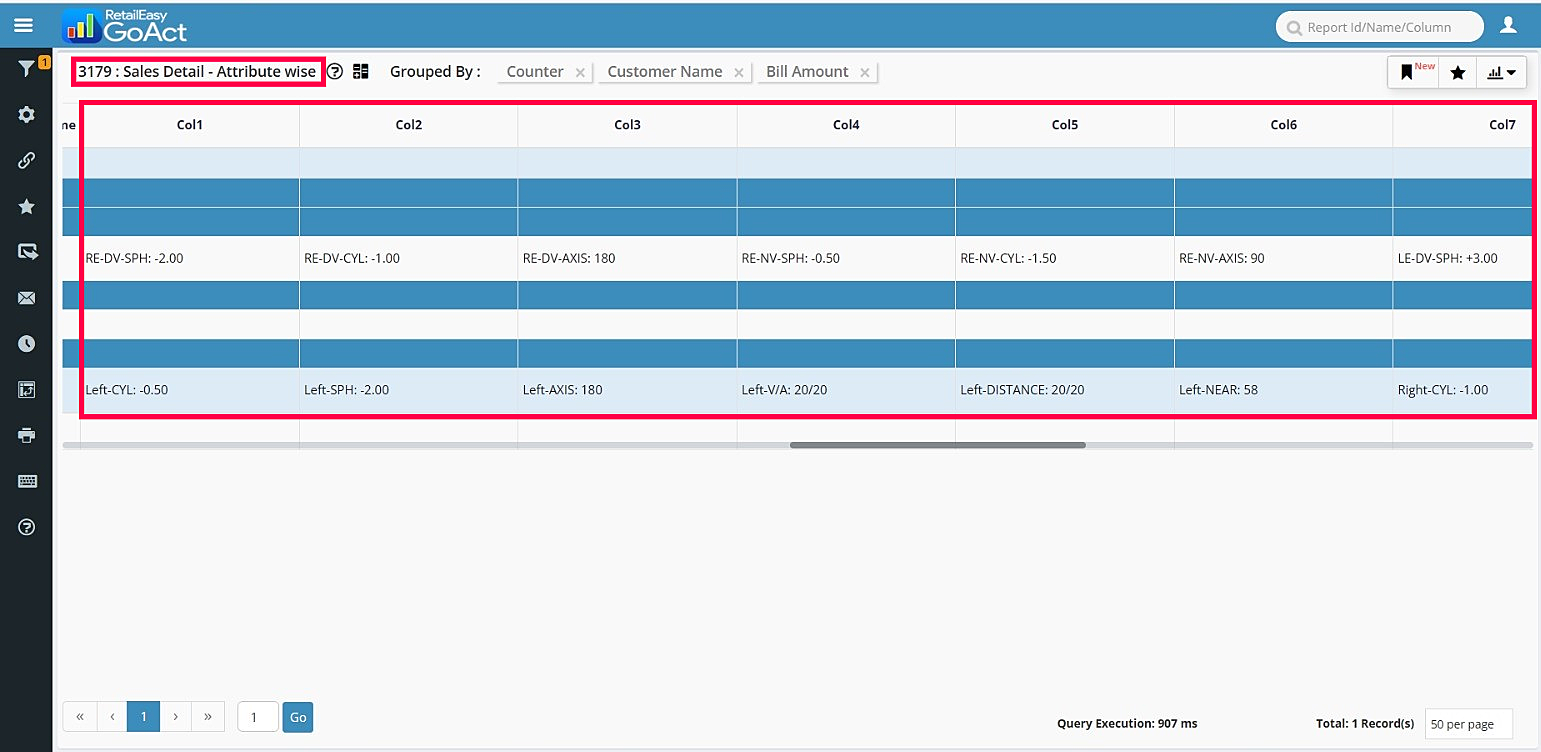 You can use the Out Attribute to create custom reports. For example, you could create a report that shows the sales of spectacles by prescription.