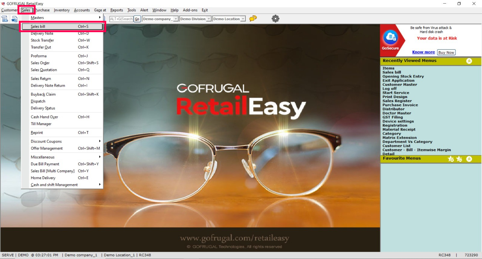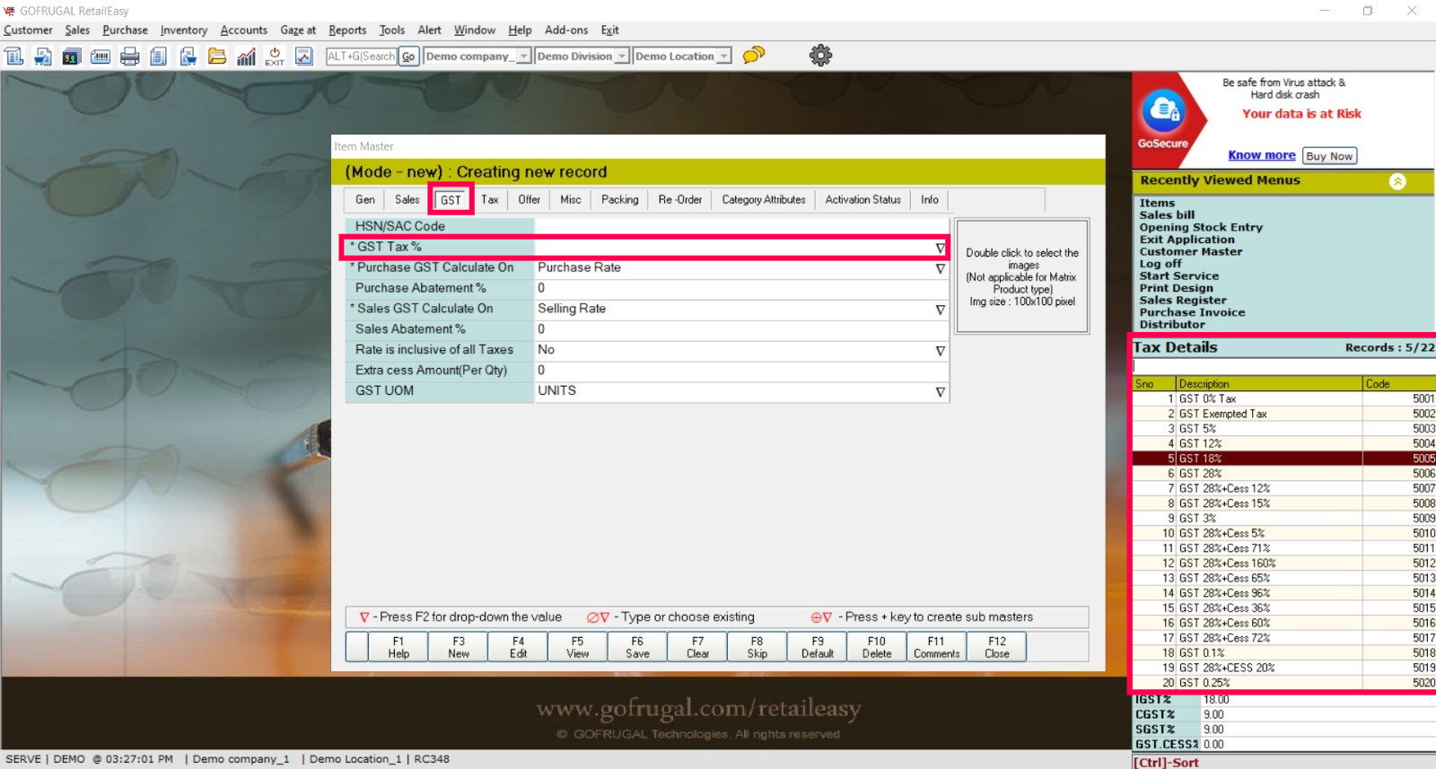 Step 3: Go to GST tab and select the GST Tax % from the LOV.
