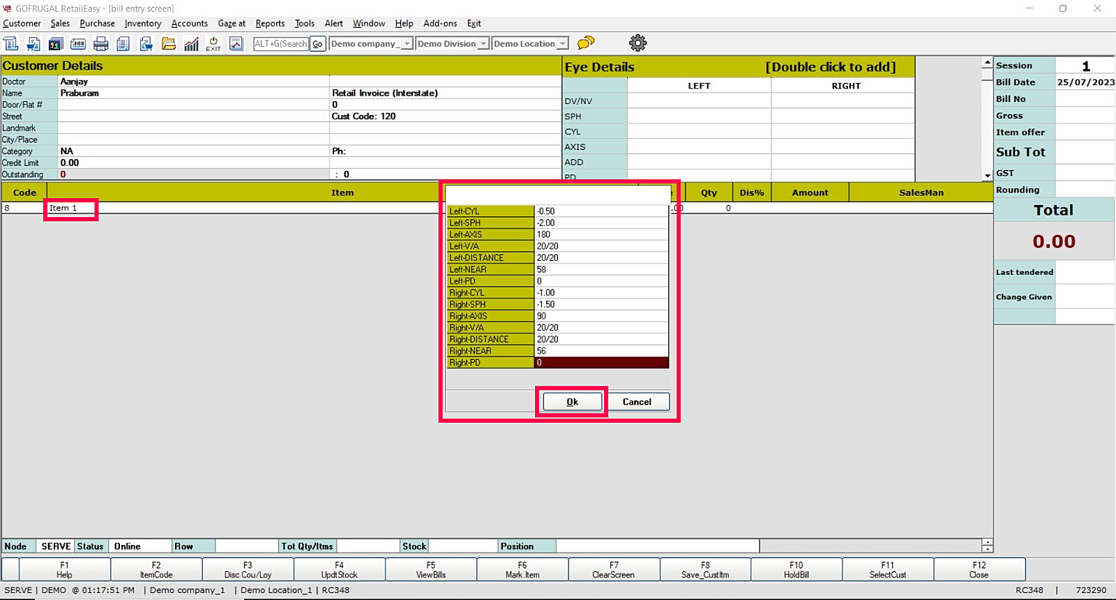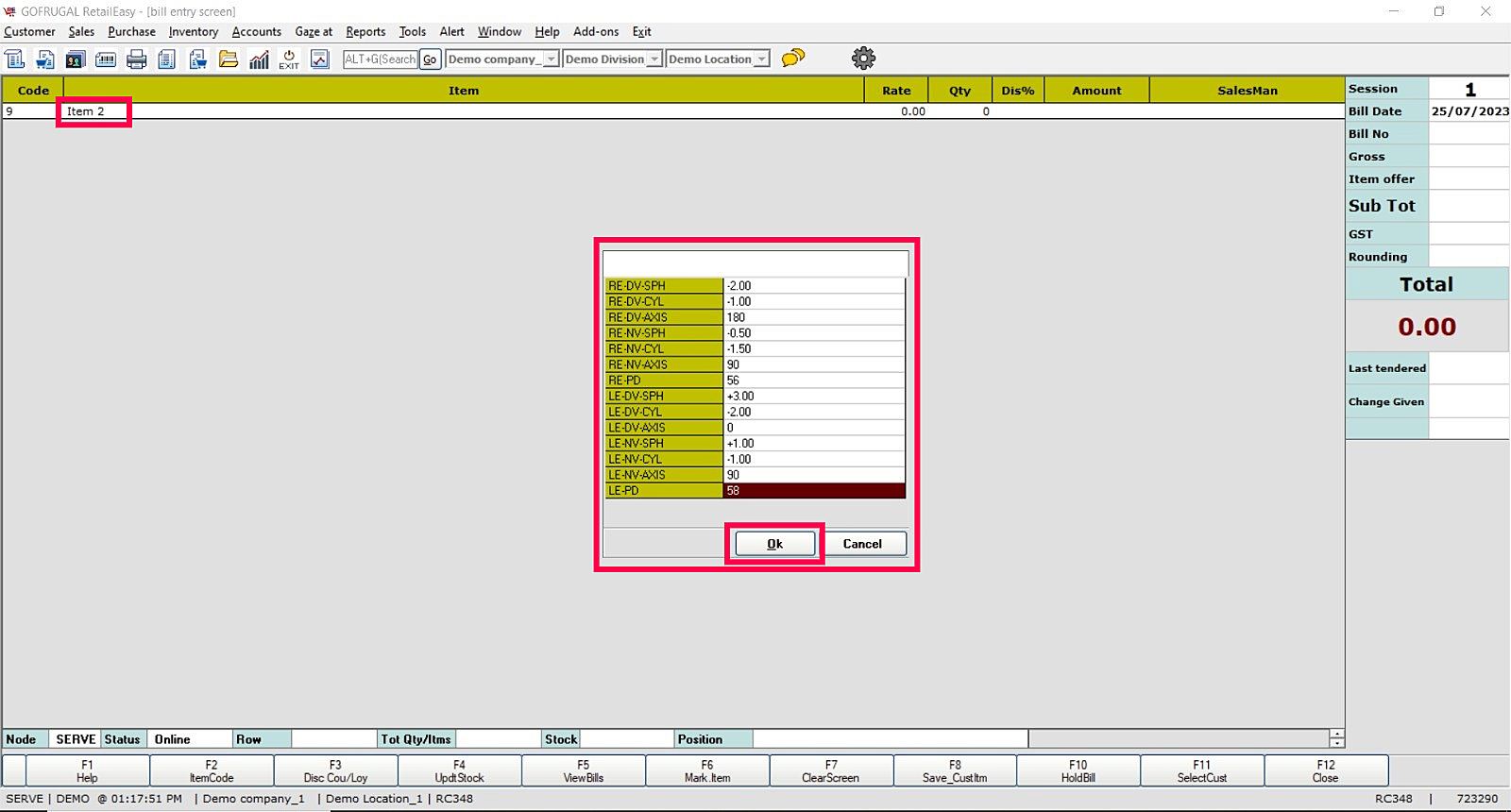 Step 3: Go to the Sales entry screen. Load the Item. Attribute screen will appear. Fill in with details and select Ok.
