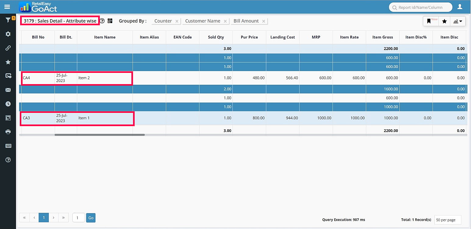 Step 2: Sales Detail - Attribute Wise screen will appear. Click on Item Name and check for details.
