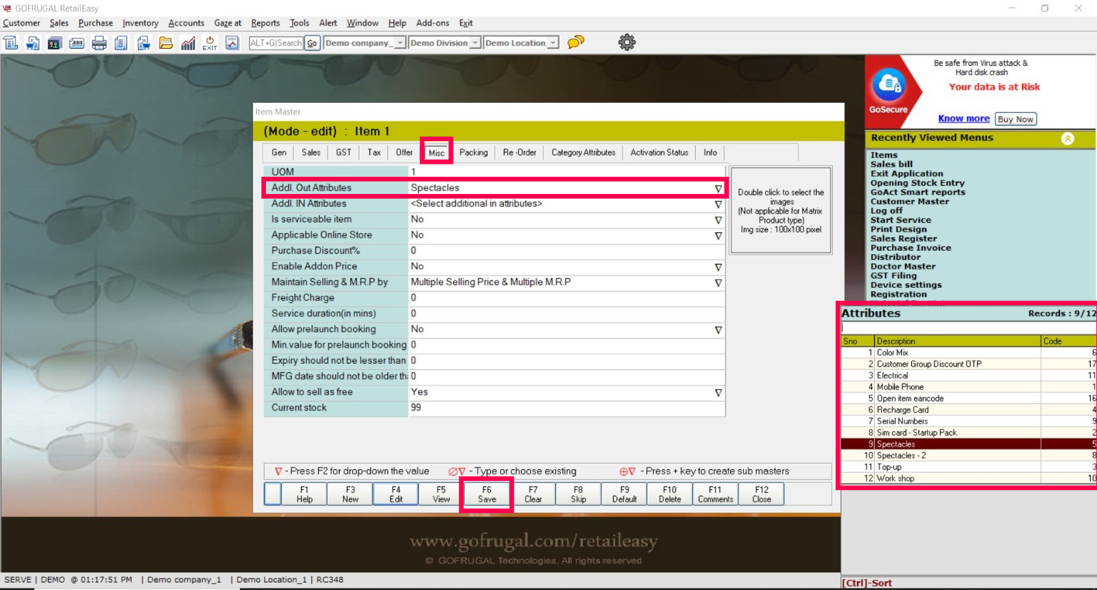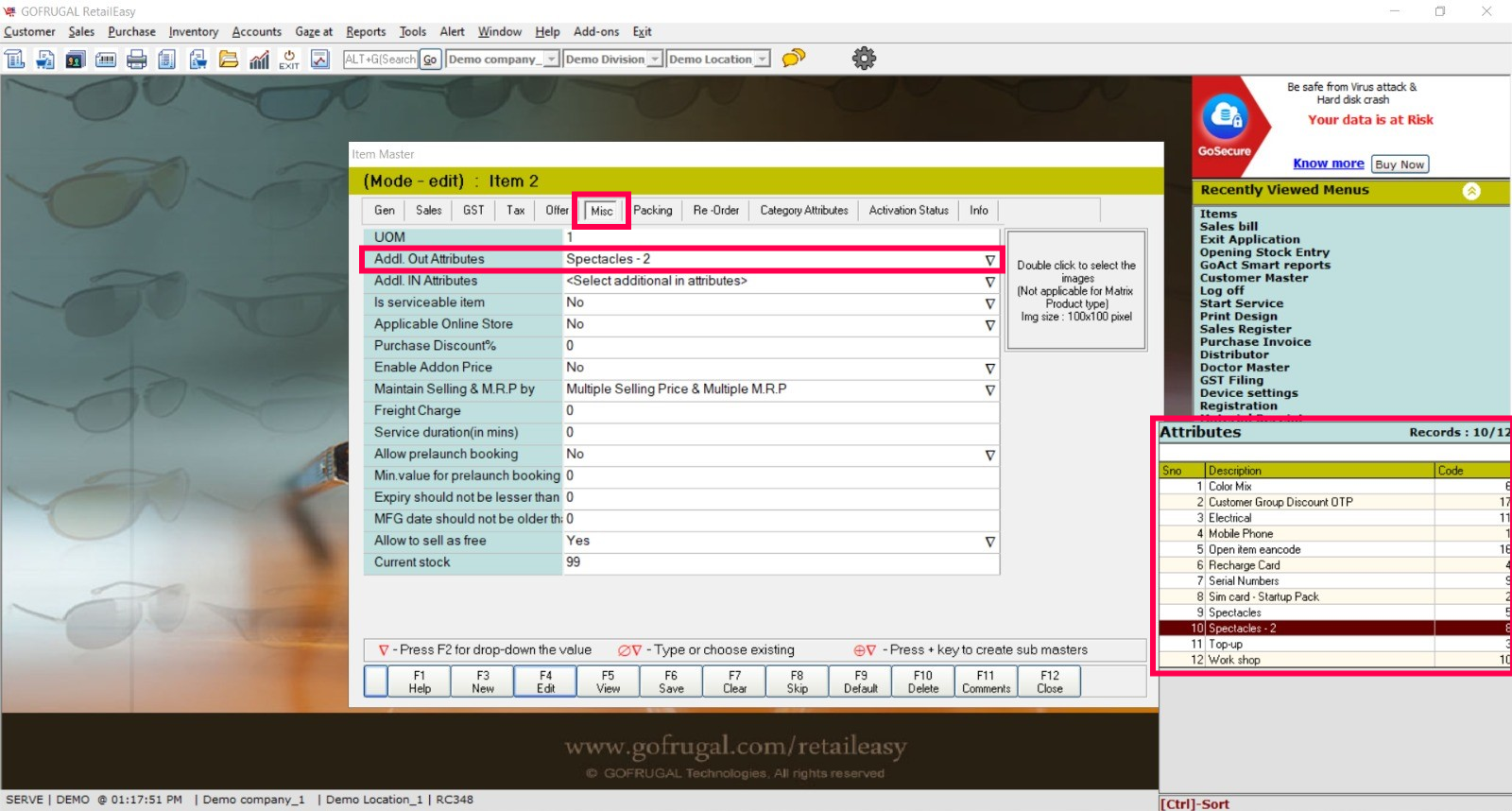 Quick and Efficient Sales Process: With all the essential details captured in the "Item Master - Out Attribute," the sales staff can quickly locate and sell the desired eyeglasses to customers, reducing waiting times and improving customer satisfaction.