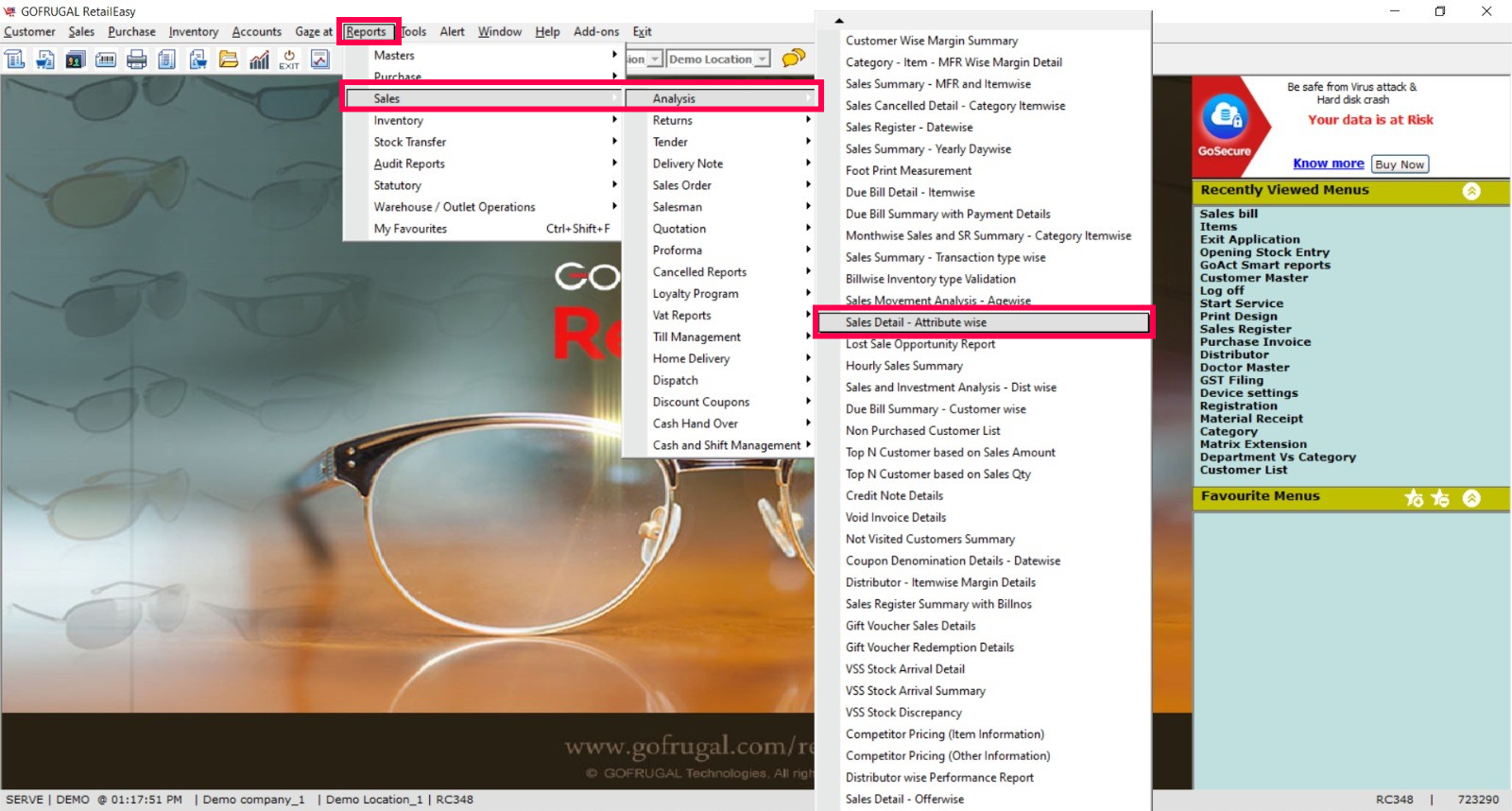 Step 1: Go to Reports > Sales > Analysis > Sales Detail - Attribute Wise