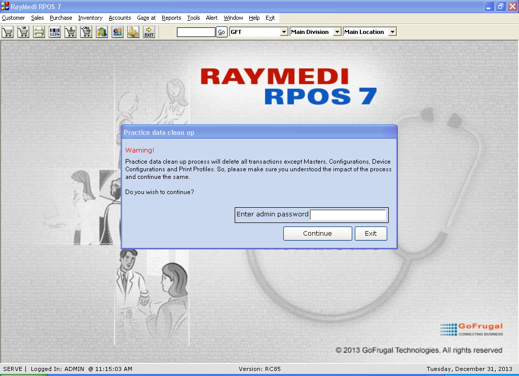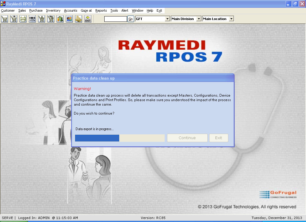 4. Click continue for cleaning up the practice data.
