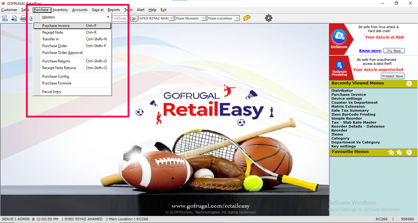 Step 5: Now Go to Purchase -> Purchase Invoice.