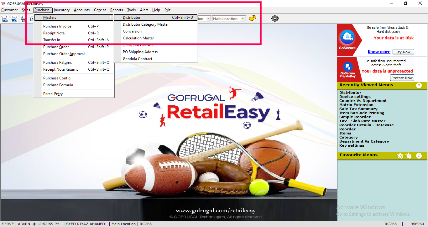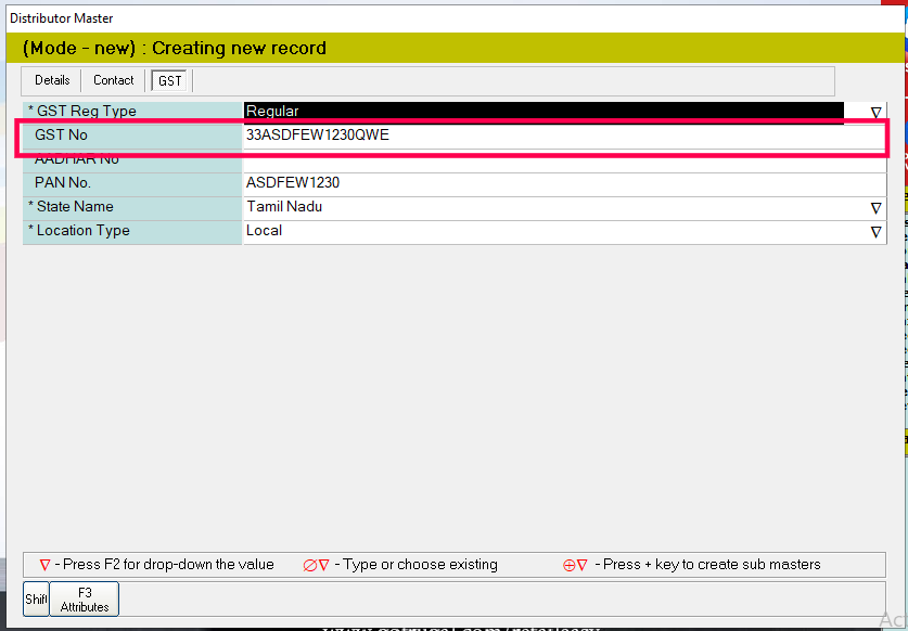 Step 1: Go to Purchase -> Masters -> Distributor.