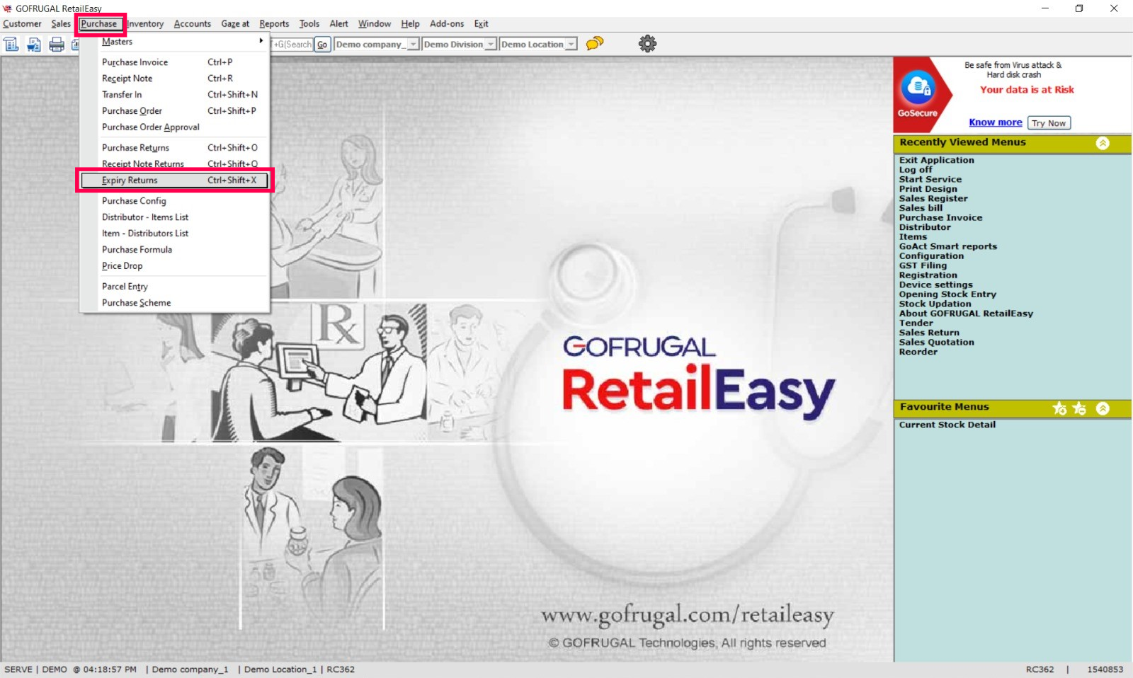 Step 1: Go to Purchase > Expiry Return