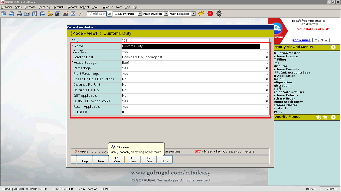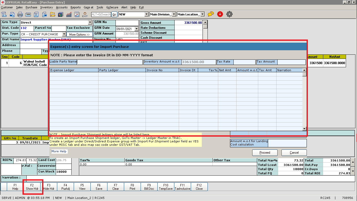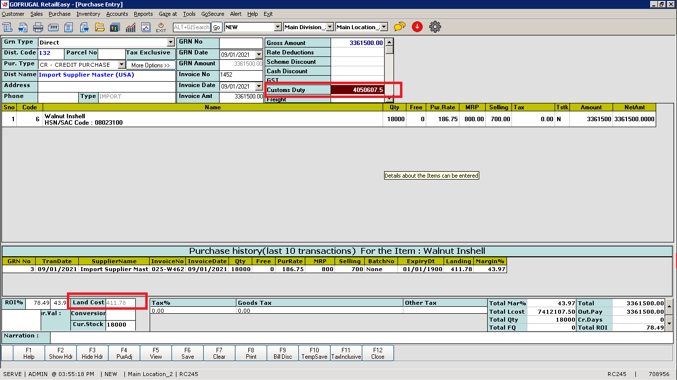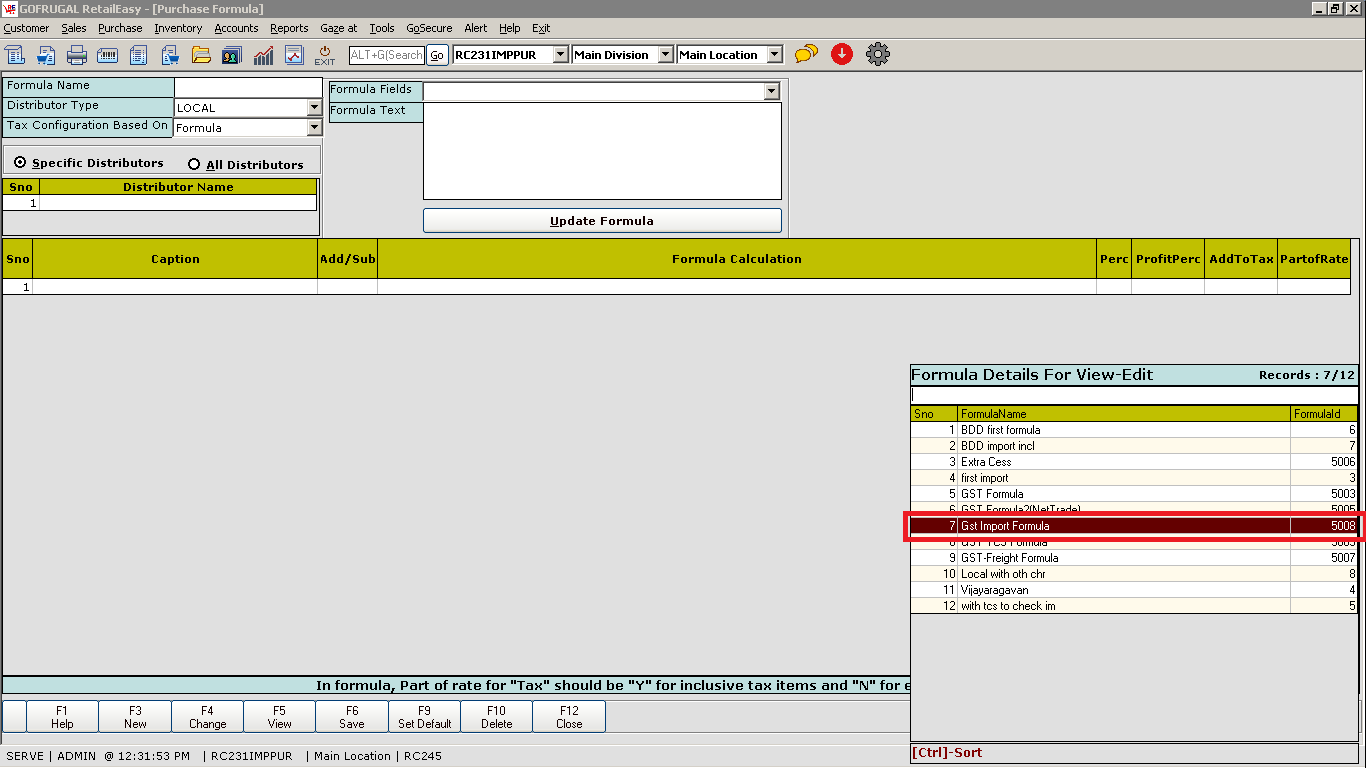 In RetailEasy, a default purchase formula " GST Import Formula " has been given