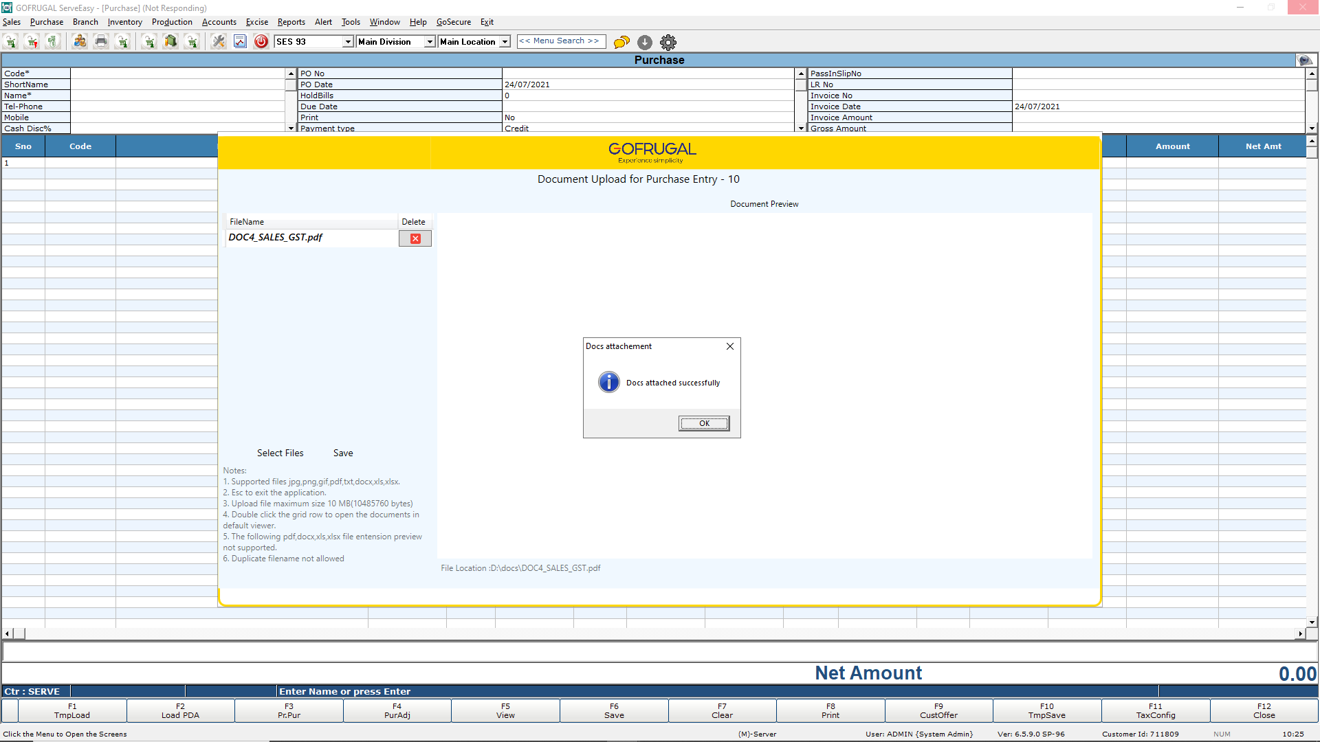 Step 5: Save the purchase entry so that your file gets uploaded successfully against the purchase