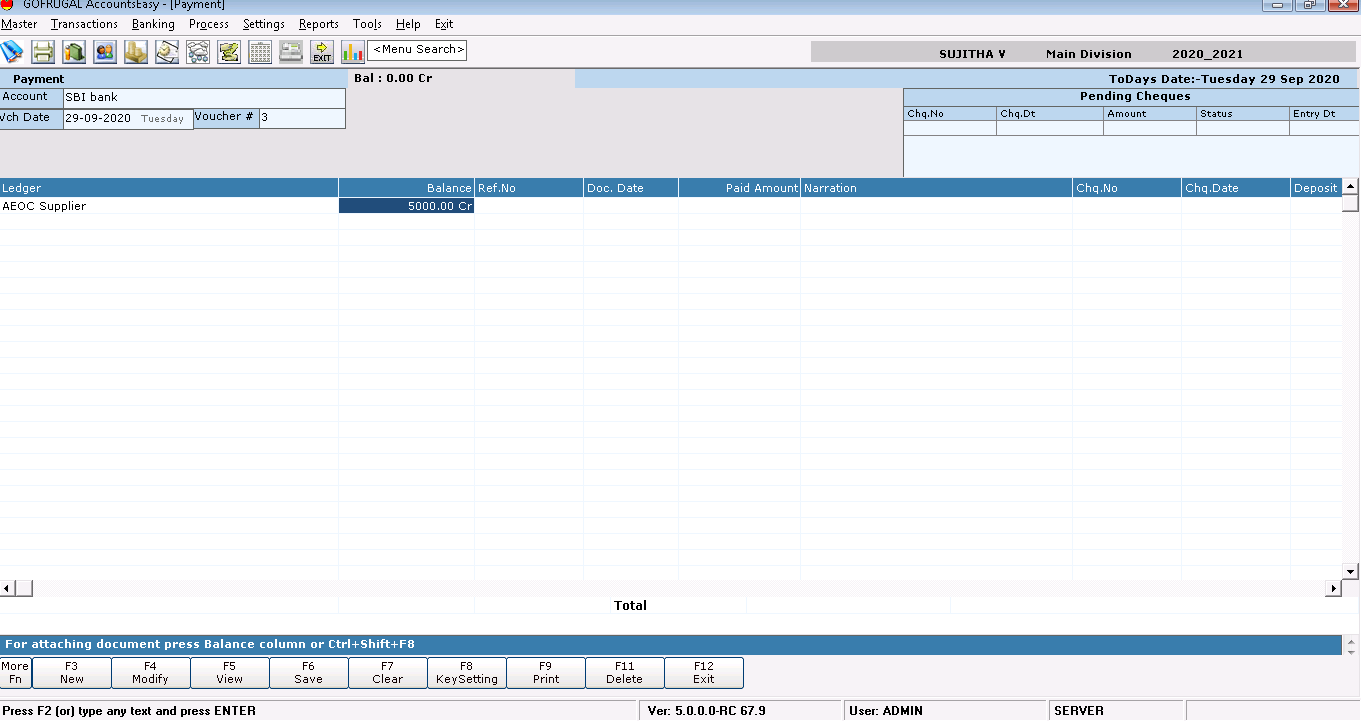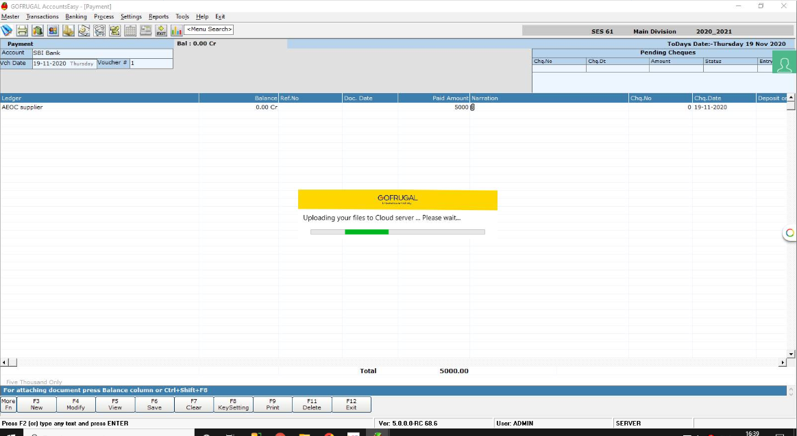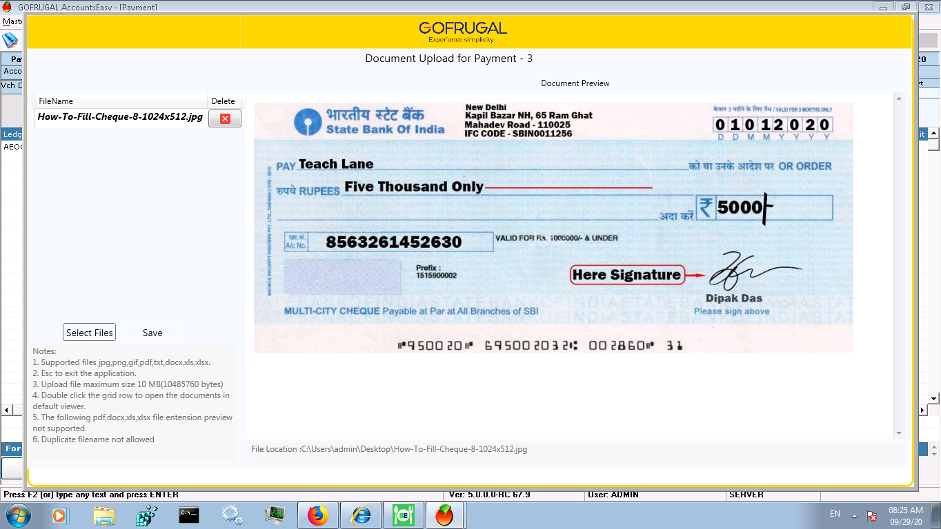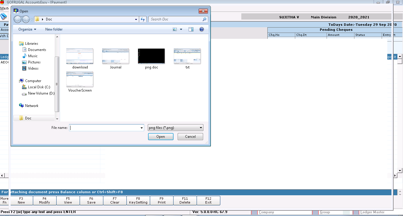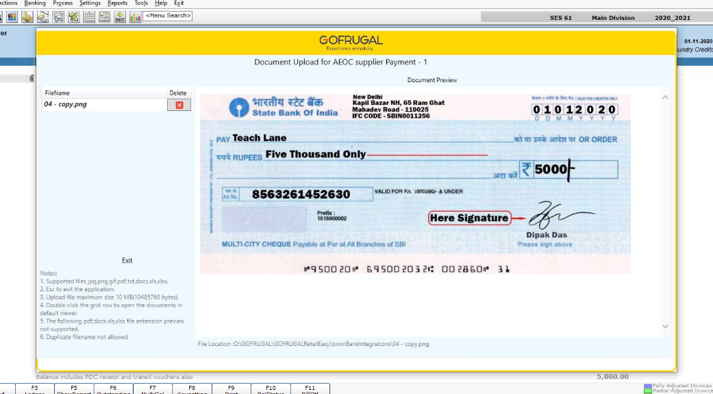 Step 6: Only when you click on F6 to save the payment voucher, the file will be uploaded, if not will get deleted