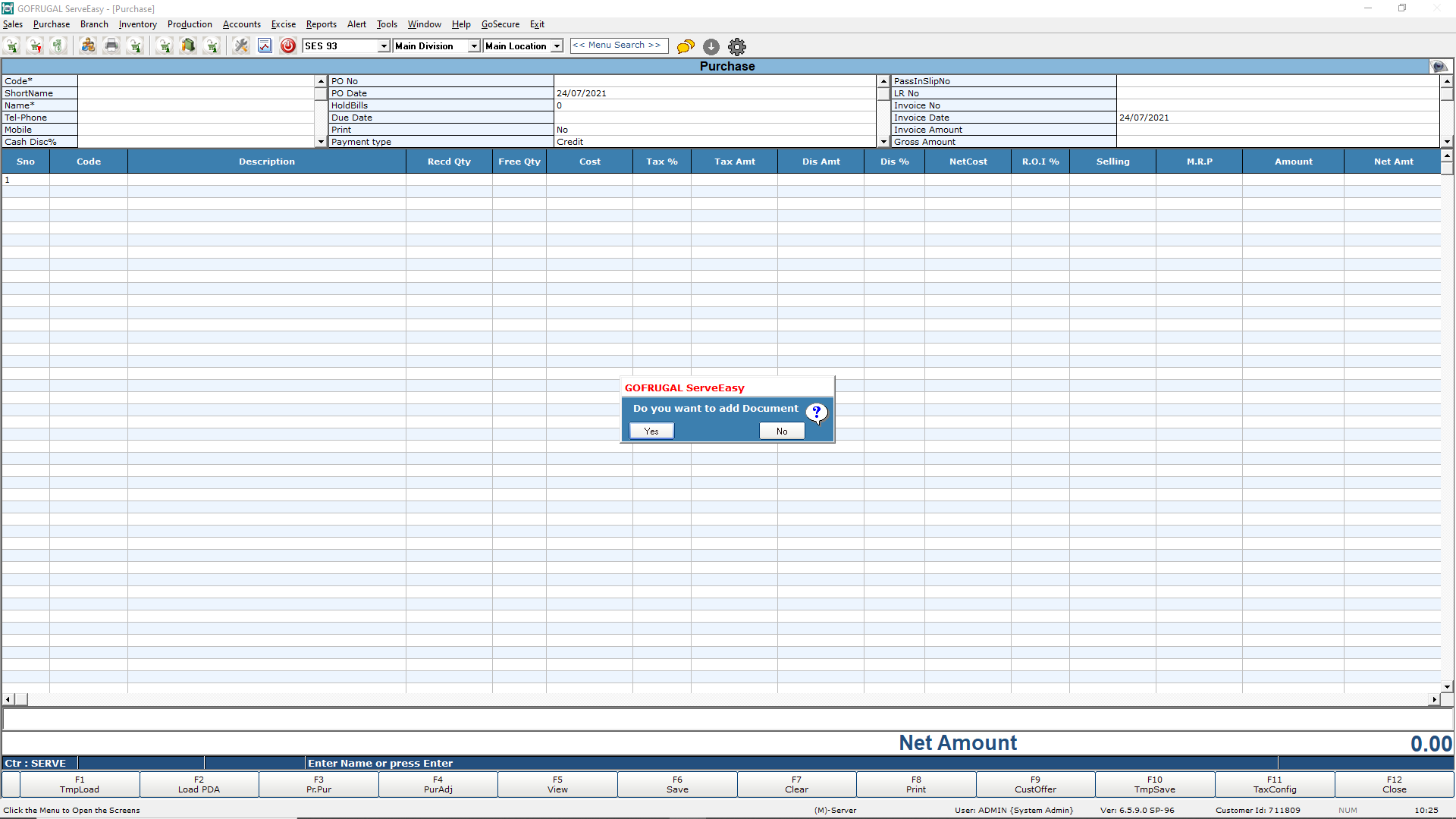 Step 2: Once the above configuration is enabled, a pop-up will arrive once you save a purchase entry asking you to upload a document. Click on YES to upload the document