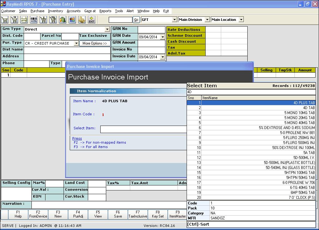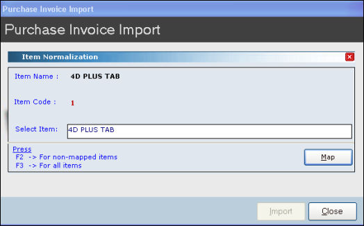 Note: when an item in the purchase invoice of a particular distributor is already mapped with the one in the application, from second time there is no need to map the item again if it is from the same distributor and the item will be skipped for mapping.