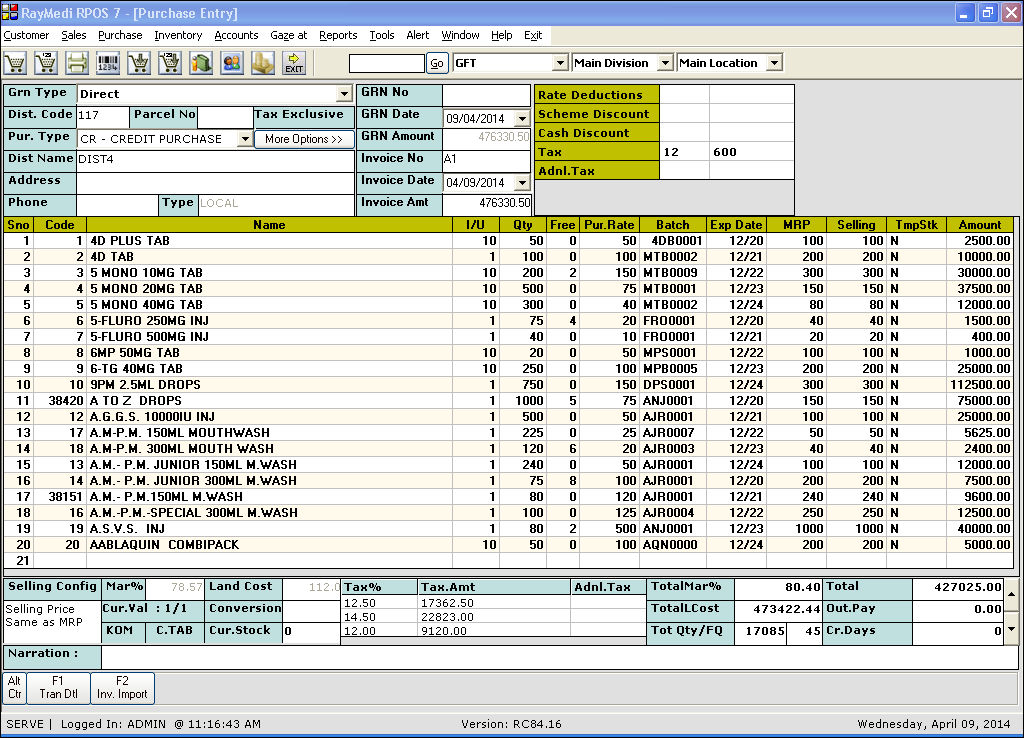 A Sample purchase invoice DIST4 from distributor 4 is shown below.