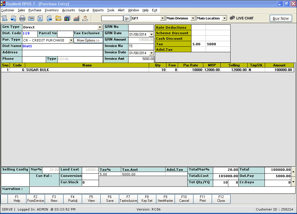 3. Press F6 or click Save to save the purchase.