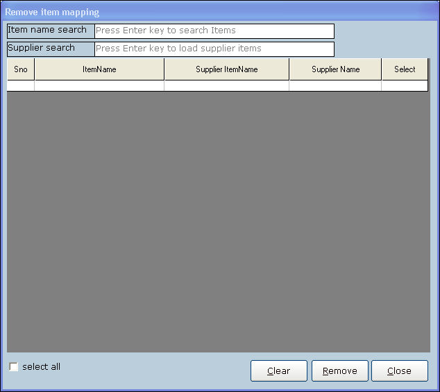 7. Select the supplier and all the items of the selected supplier is displayed.