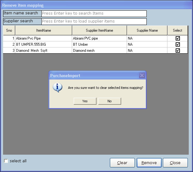 From next time, if the removed items arrive at the time of import, user can map the items correctly by clicking Import. The remapping can be done by item wise (or) supplier wise