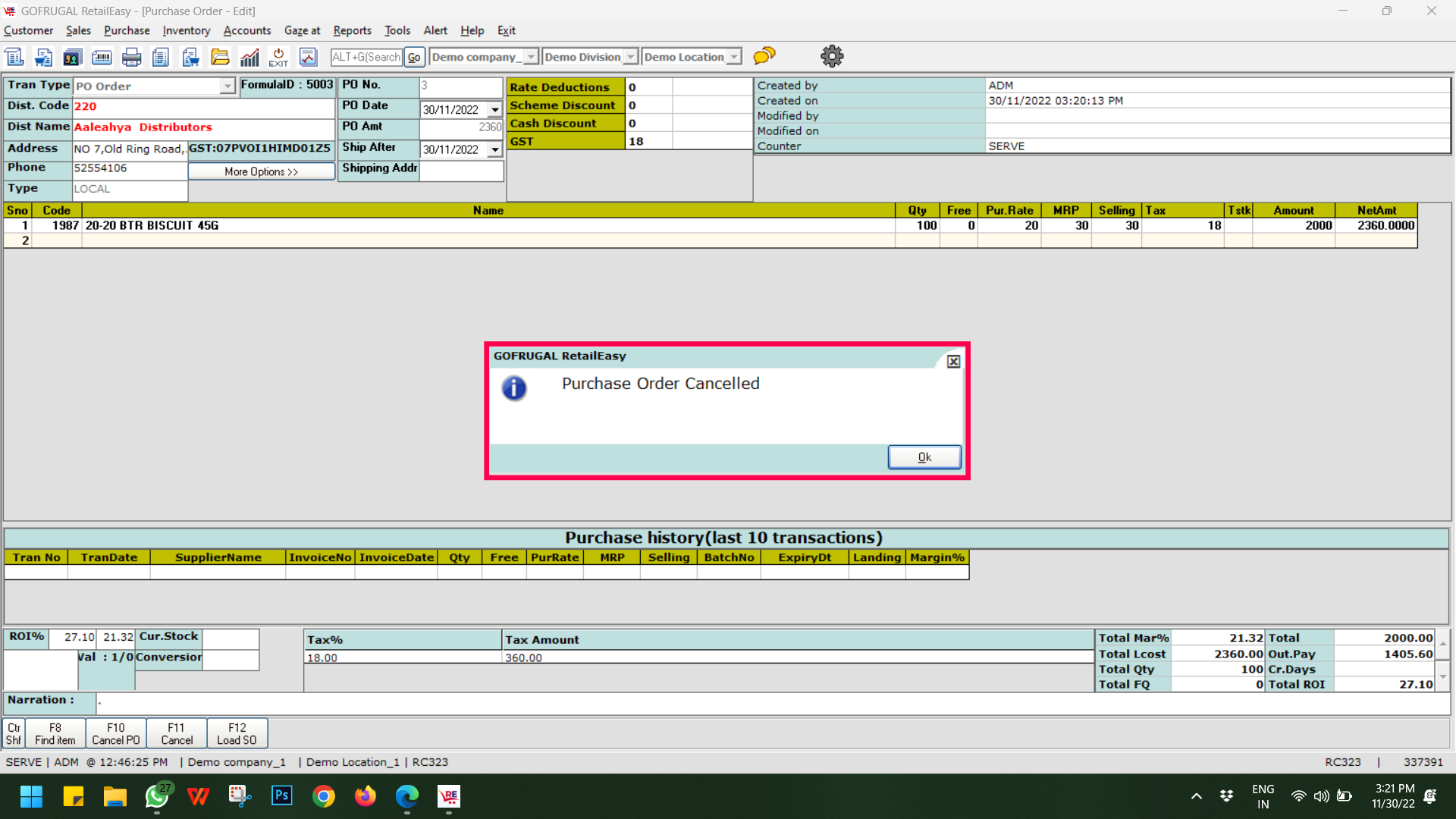 By doing a Purchase Order cancellation, your unwanted purchase orders will be removed. Those Purchase orders will not get listed while converting a Purchase Order to Purchase invoice.