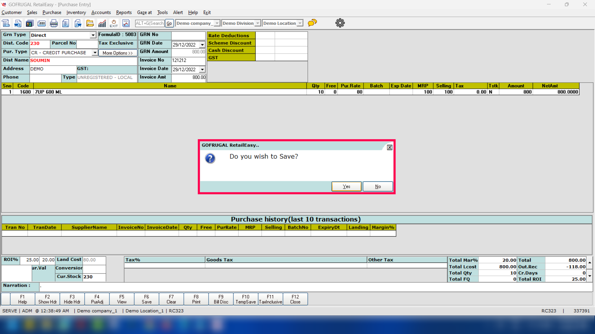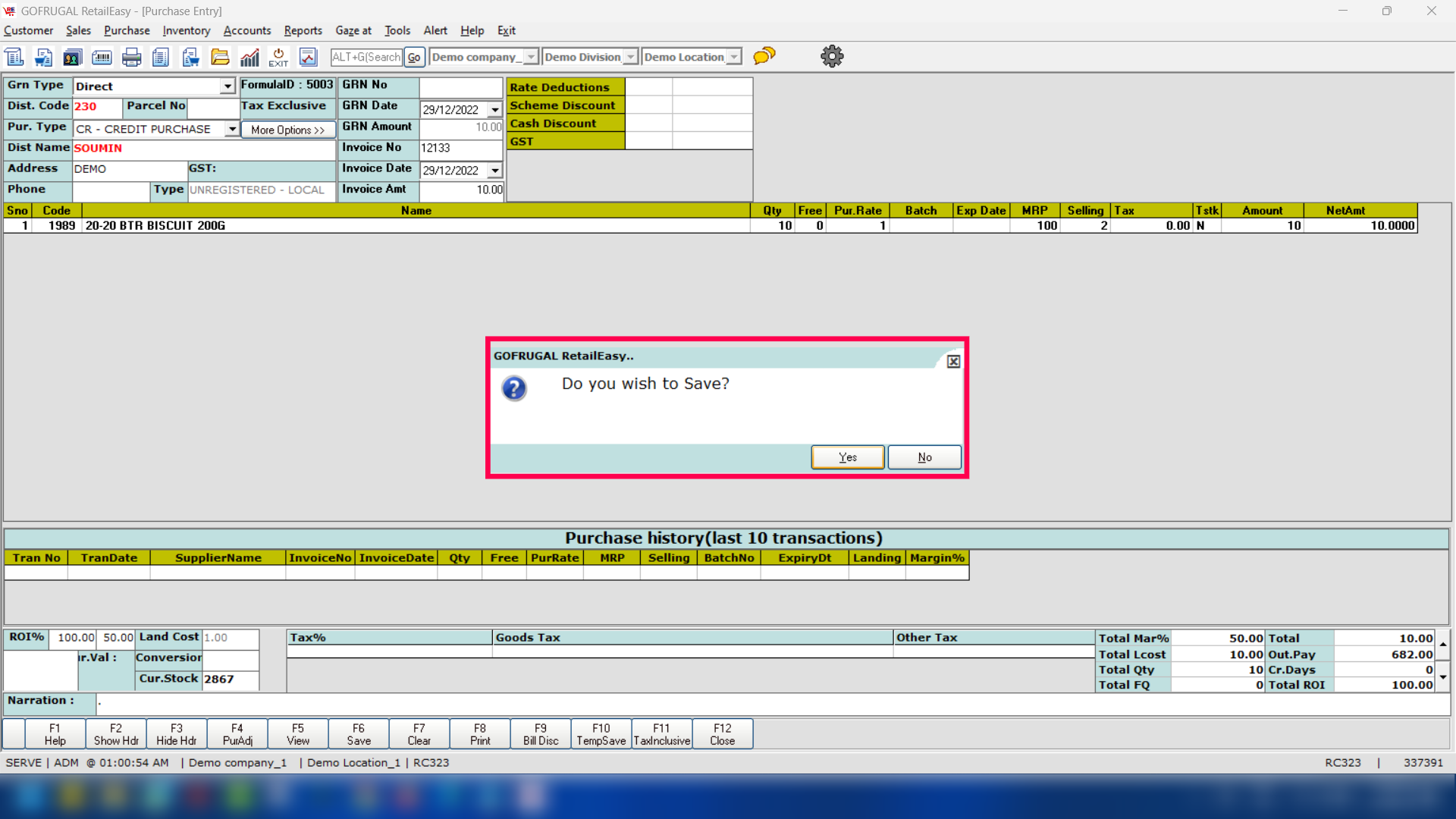Step4: After checking all the details and putting the Invoice No and Invoice Date as per your requirements, click on F6 [Save] button to initiate the save process.