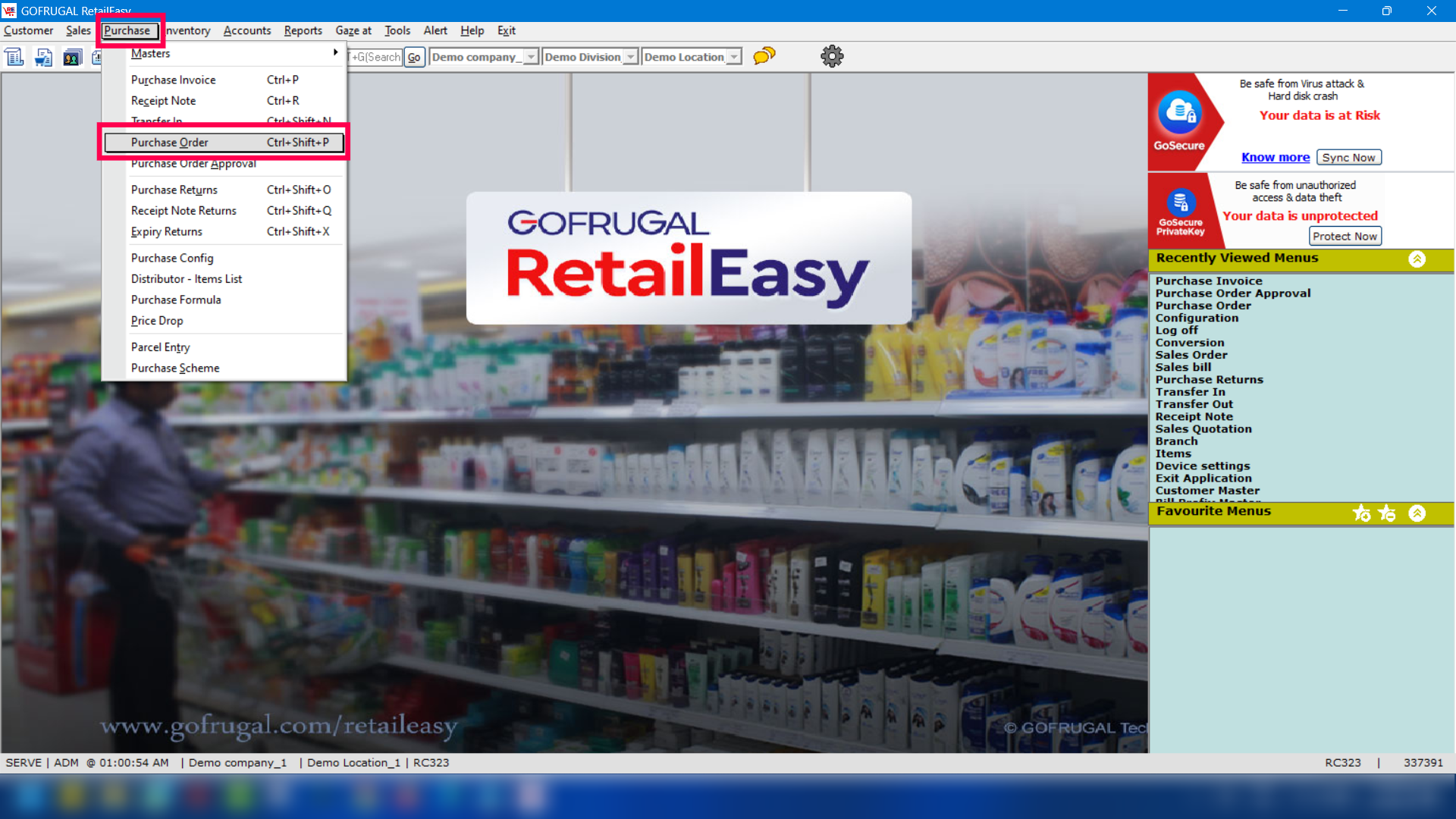 In Retail Business, retailers will make purchases within the state and outside the state. They will visit the manufacturing place directly or the wholesale market, will look up the required collection of the stocks and give the order details on the required quantities. When the items are received, the purchase order will be converted into purchase.