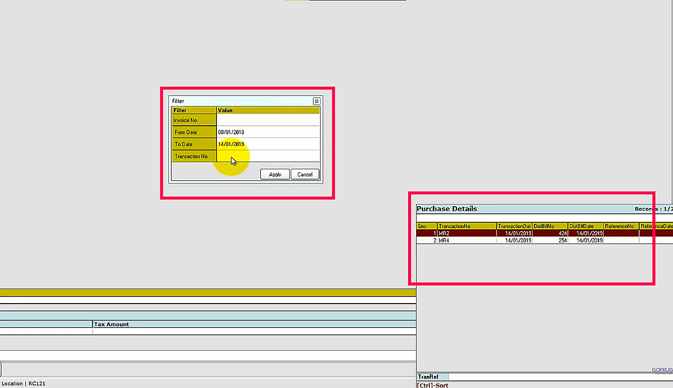 Step 2: When you click on view, enter your transaction details to load the purchase invoice, choose the purchase invoice and all the products you want to return, and click save.