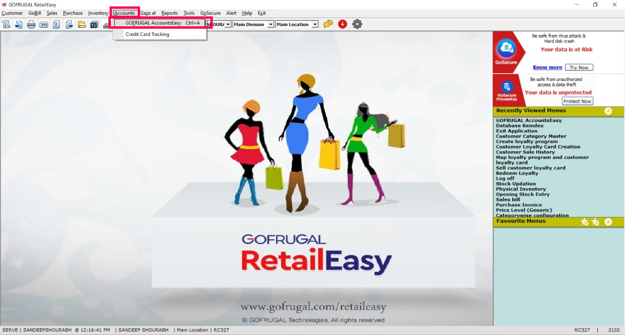 Step 1: Go to Accounts and click GoFrugal AccountsEasy option.