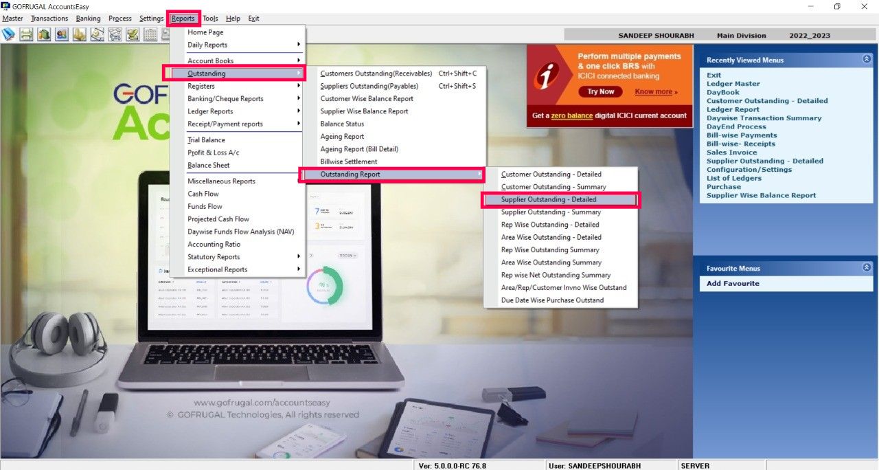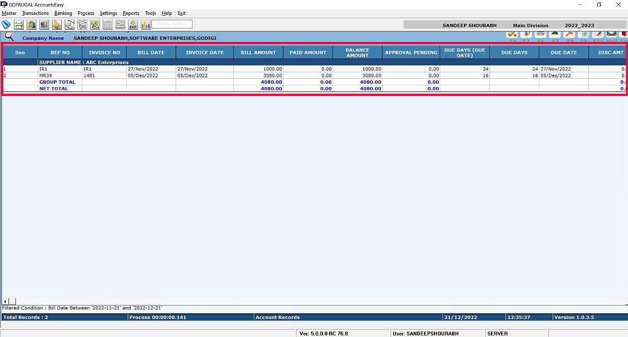 Steps to check the Supplier Wise Outstanding: