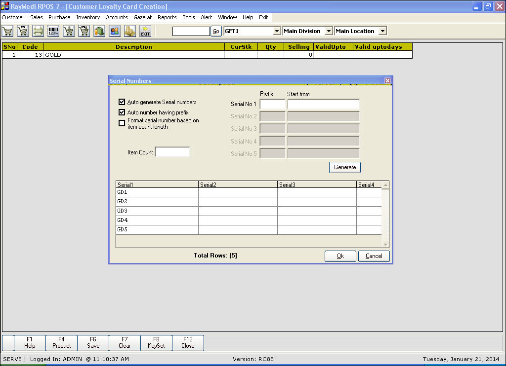 a. Select the Auto generate Serial Numbers check box to generate auto serial number