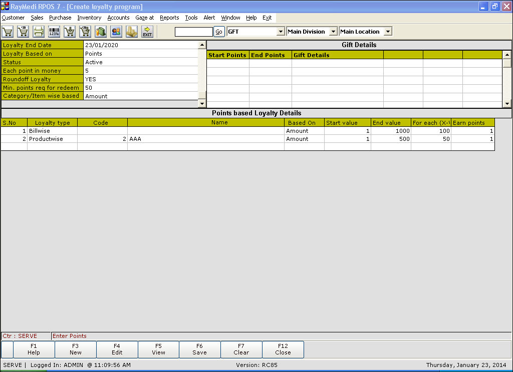 2. For Amount based loyalty, the fields Round-off loyalty and Category/Item wise based are not applicable.