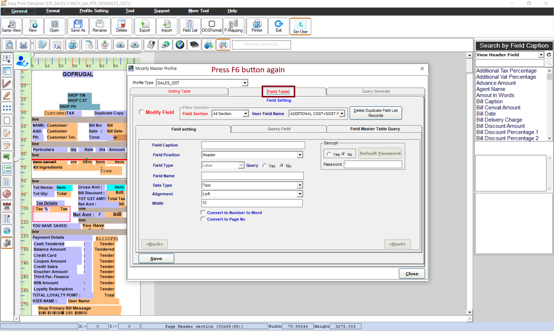 Step 4: Press the F6 button again, then click on the "Field Table" tab below to create a query field.
