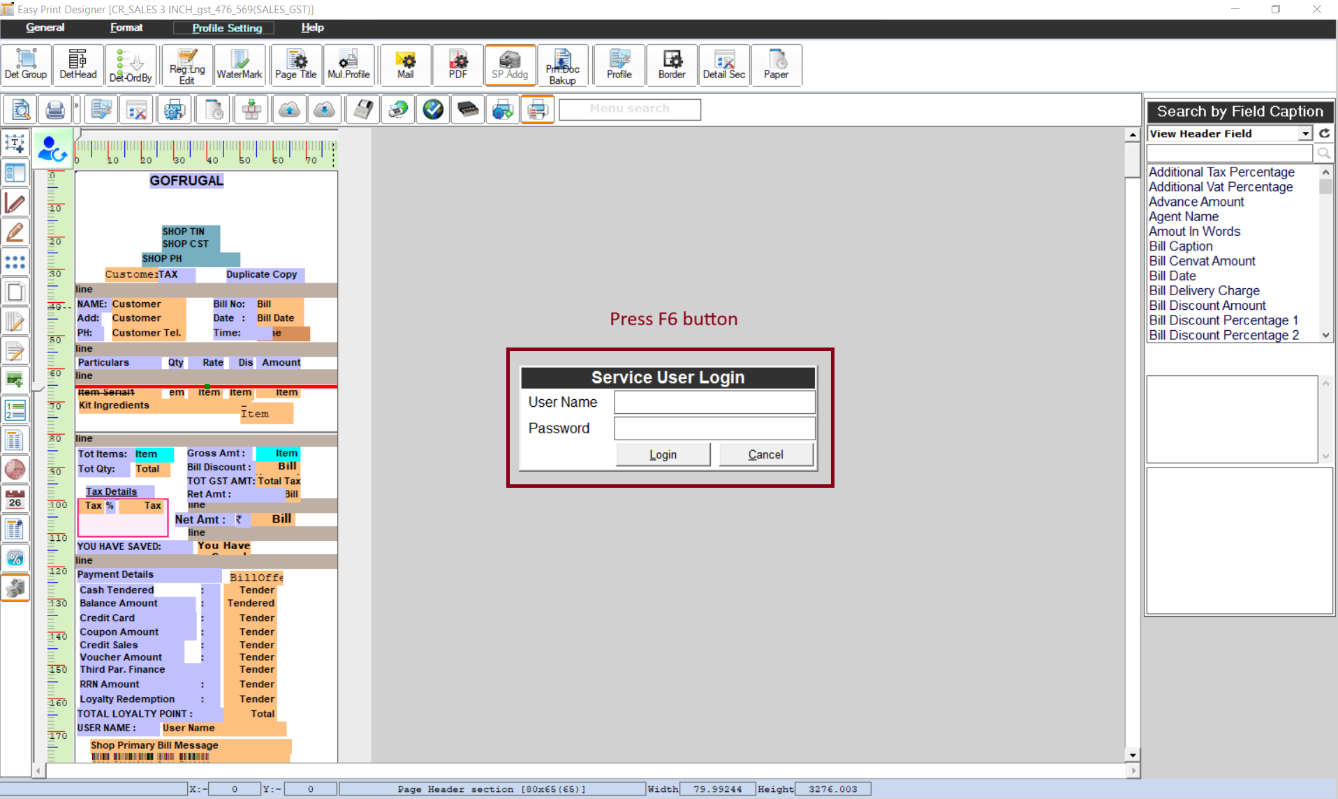 Step 3: Press the F6 button and log in as a service user in the Easy Print tool.