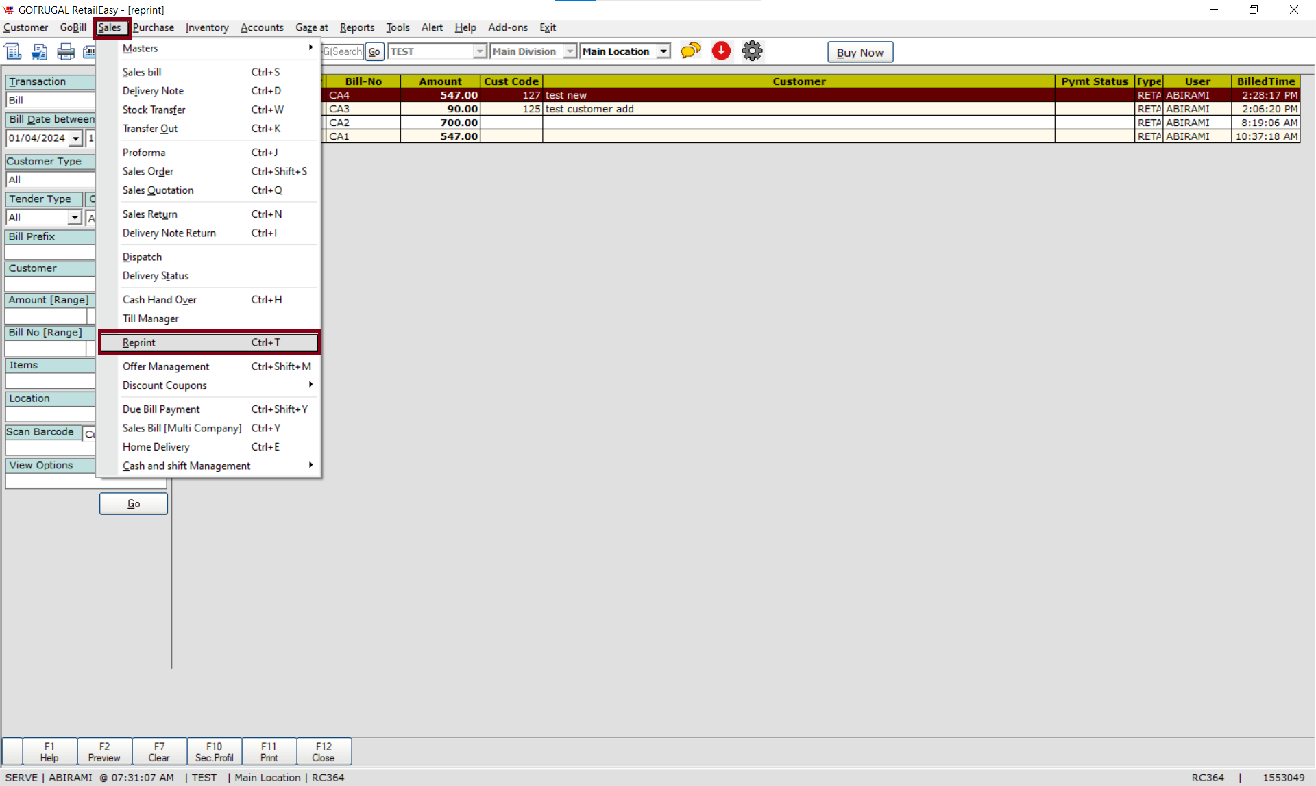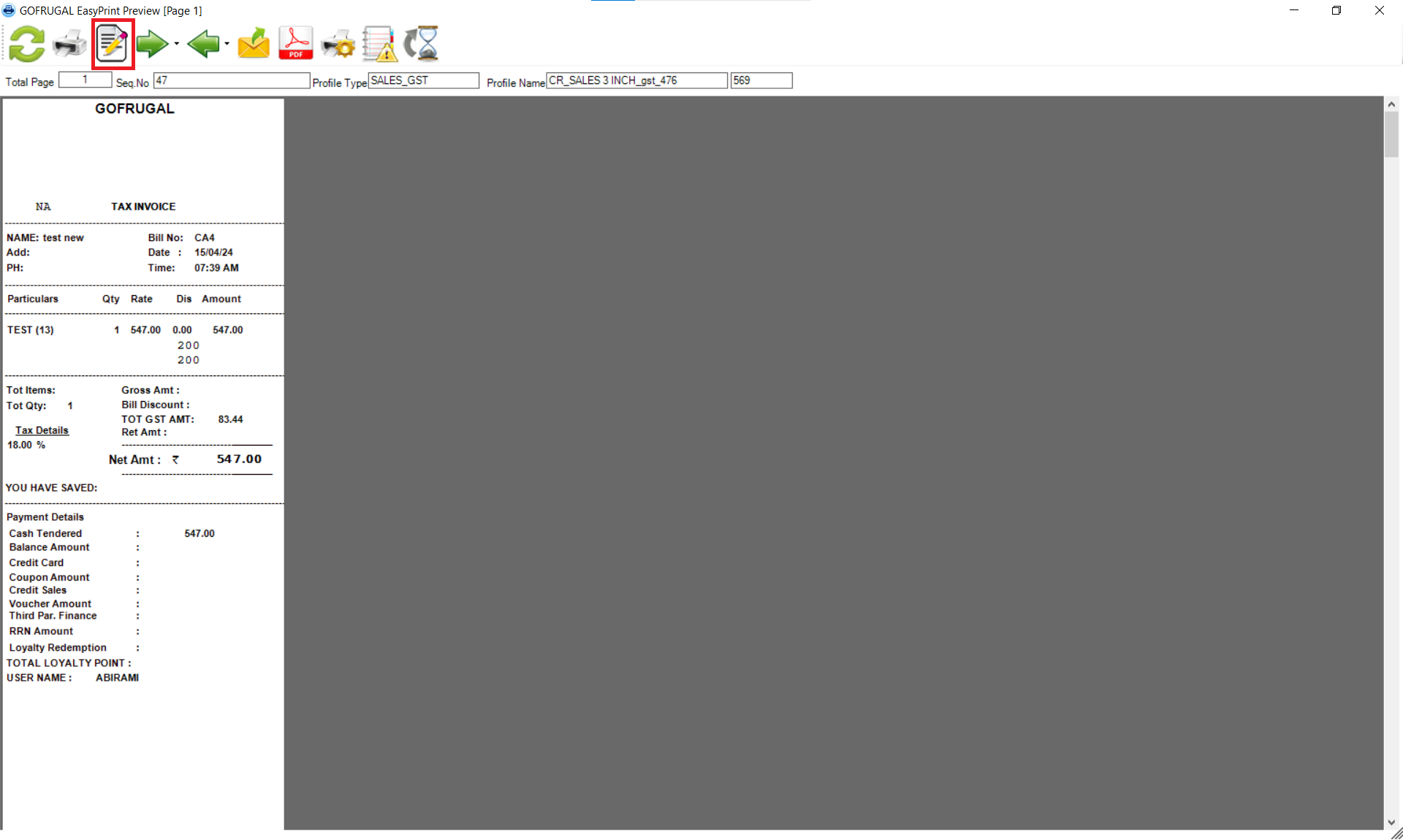 Step 1: Navigate to the Reprint screen and load any invoice in the preview.