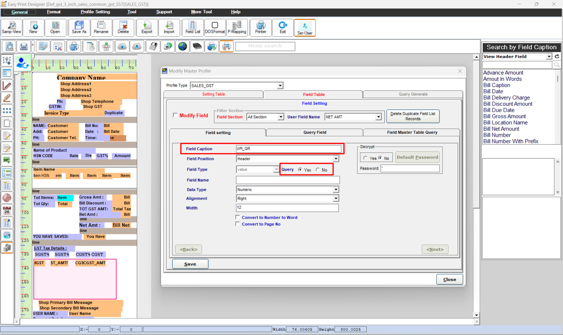Step 6: Name the field [For example - UPI_QR] and set the query field option to "Yes" beside the Query option.