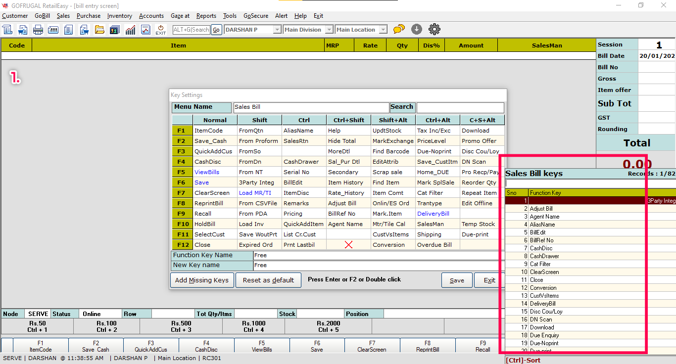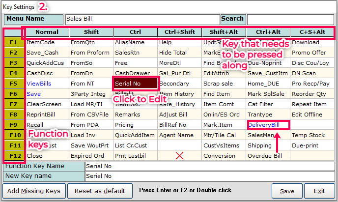 As an example, when a billing process occurs, searching for views bill, save bills, and hold bills will take more time, instead, by using a function key, you could easily enter the assigned keys for each function and do the job quickly.