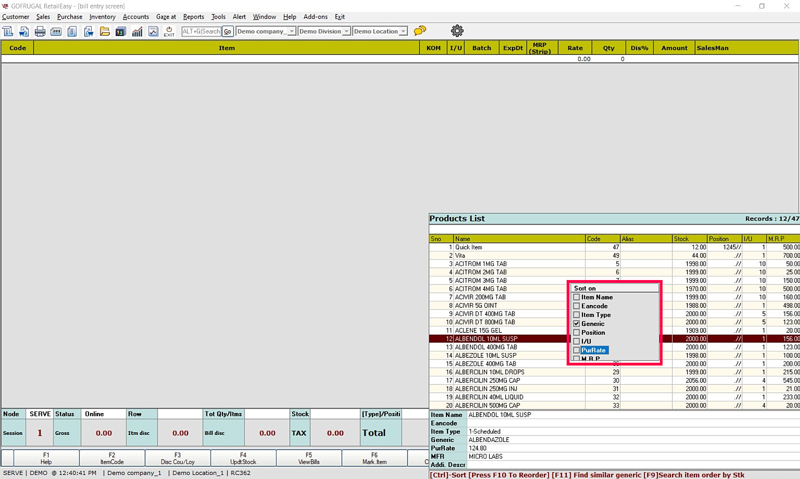 The implementation of a "Search and load items using generic name" feature in the pharmacy vertical retail outlet POS system is a strategic enhancement designed to streamline the sales process, improve accuracy, and enhance overall efficiency. By allowing users to search for medicines based on generic names and providing a convenient shortcut (CTRL + F11), this functionality addresses the challenges of navigating extensive item lists and fosters a user-friendly interface.