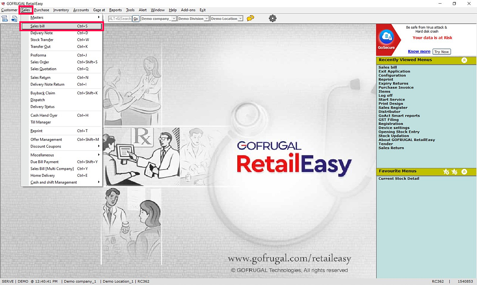 Step 1: Go to Sales > Sales Bill