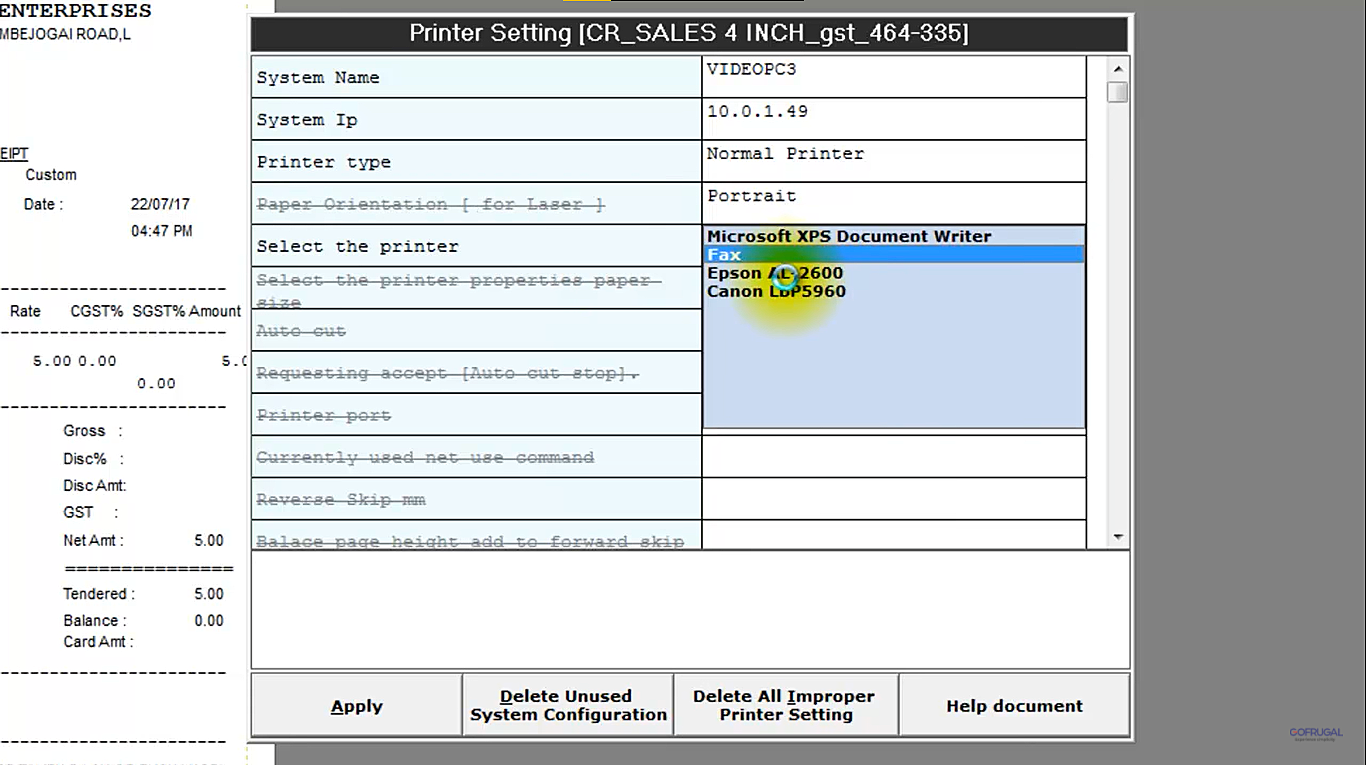 Step 3: Choose the printer for printing from the list of printers connected to the system and click Apply.