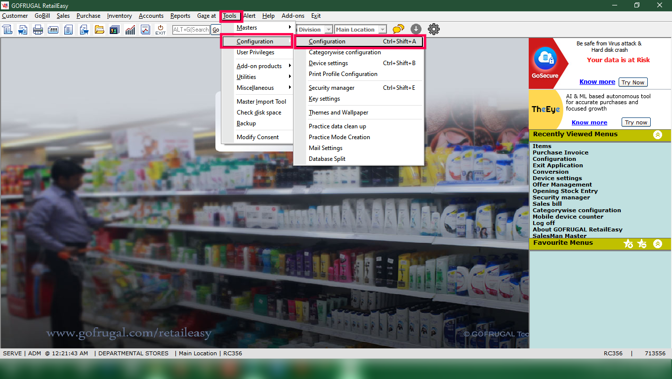 Step 2: Go to Tools > Configuration > Configuration