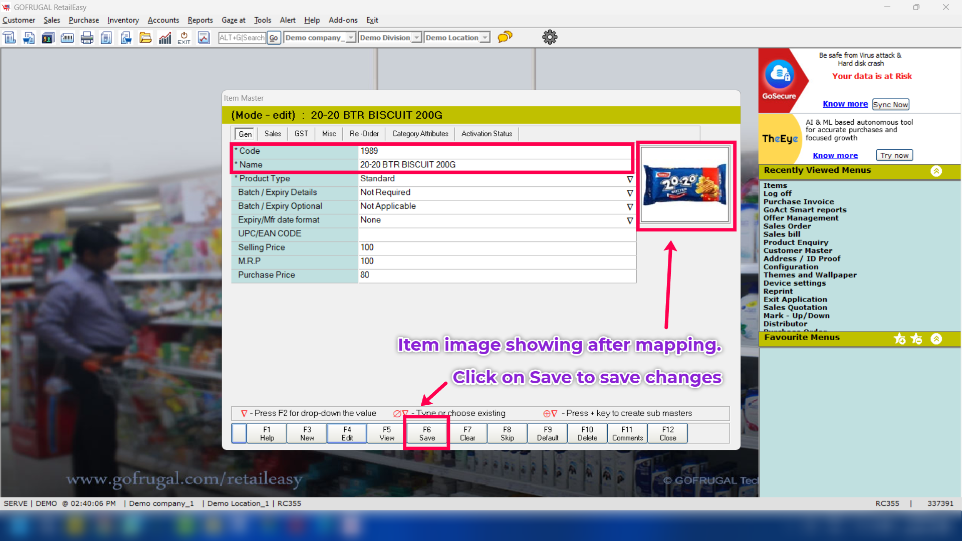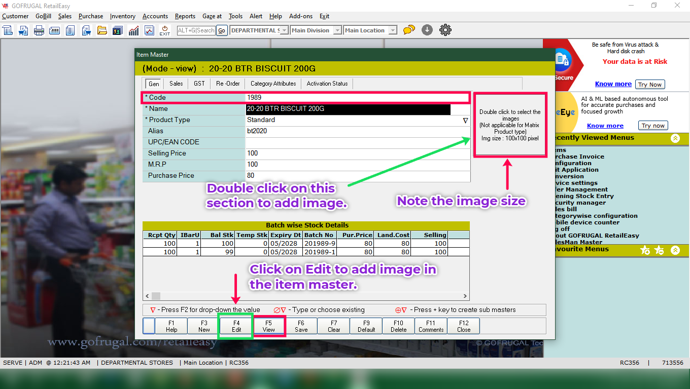 Step 3: Click on [F4 Edit] button and load the item for which you want to map the image.