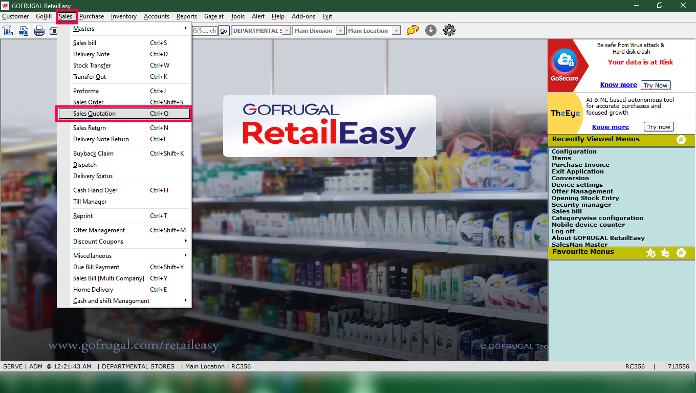 ☑ DOING A SALES QUOTATION ENTRY :