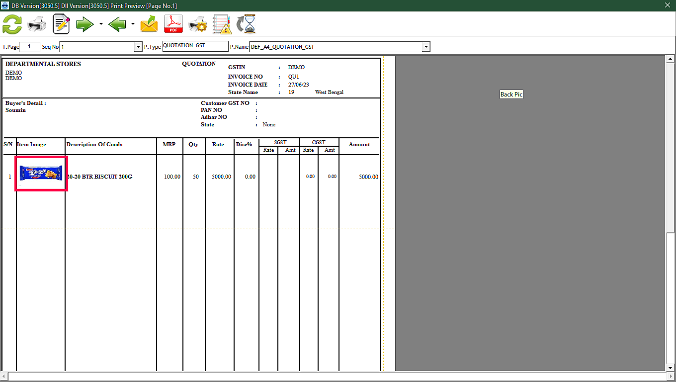 Step 5: Click on the Preview button to generate the preview. The Item Image is getting displayed in the printout now.