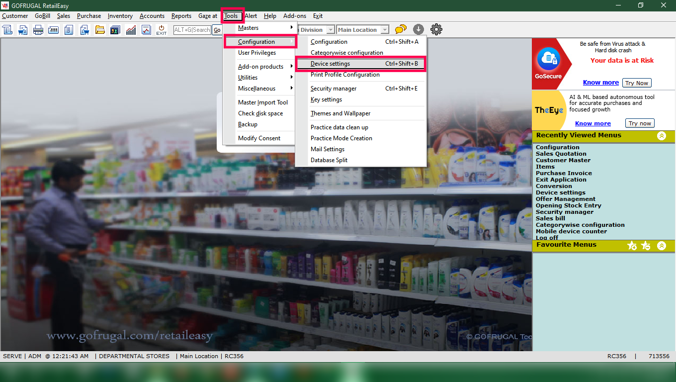 Step 1: Go to Tools > Configuration > Device Settings