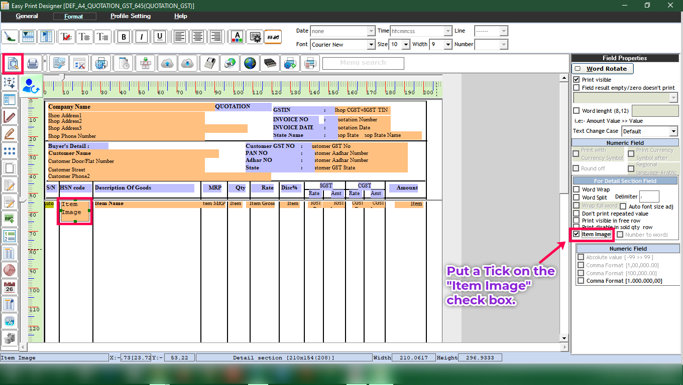 Step 4: After putting the Item Image field, put a tick ☑ on the "Item Image" option in the Field Properties section.