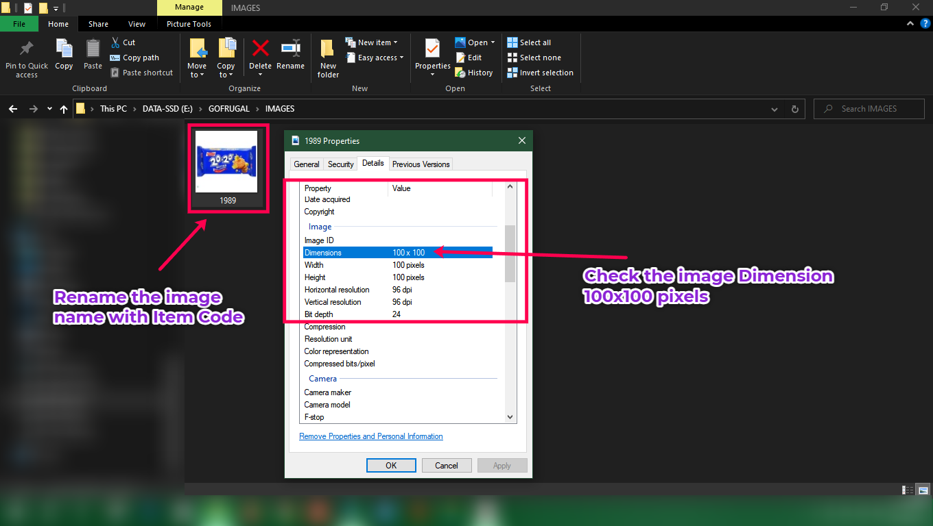 Step 1: Create a folder called IMAGES and put all the images you want to map with the items. Rename the image name with item codes.