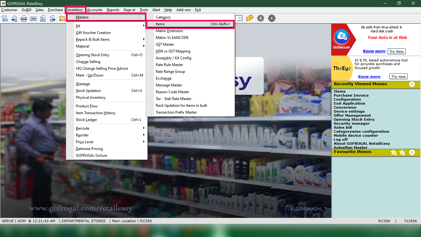 Step 2: Go to Inventory > Masters > Items.