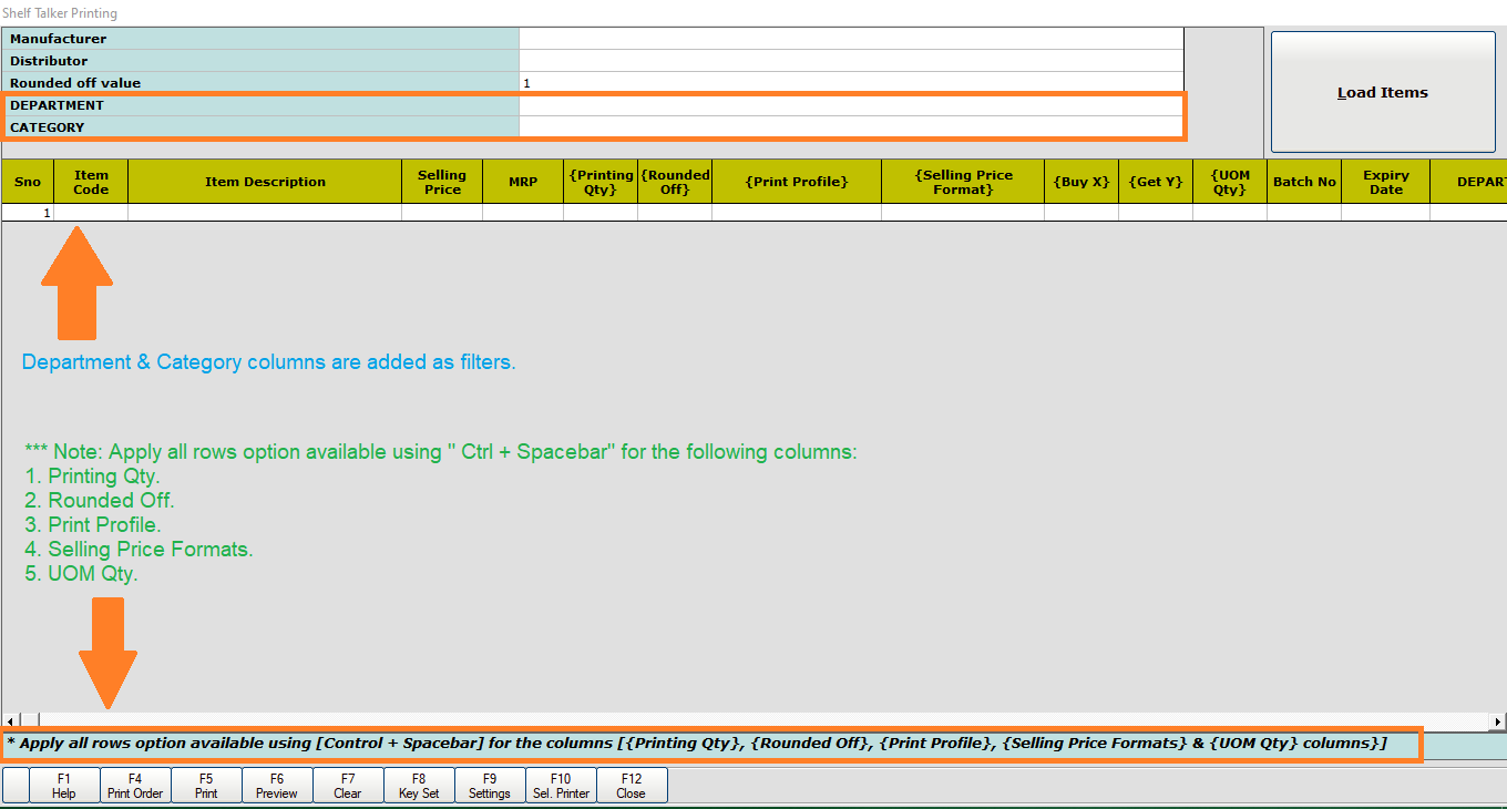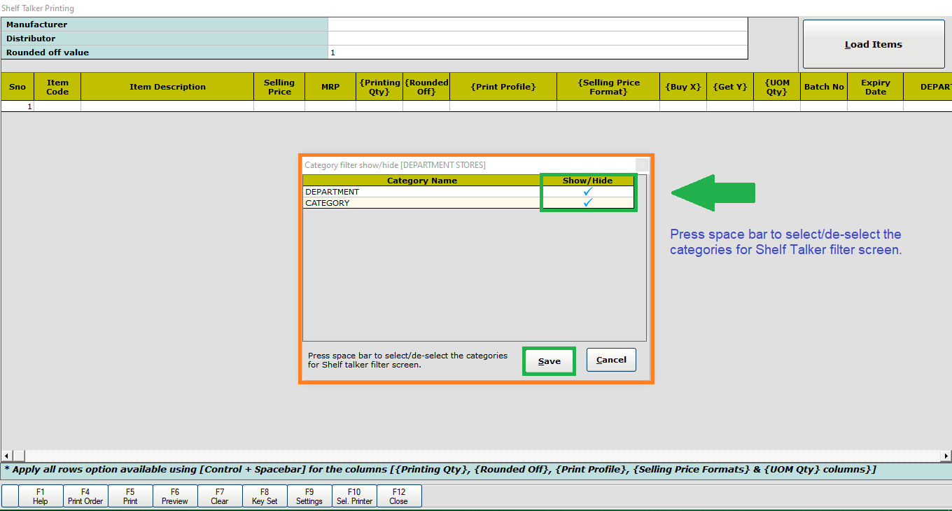 Step 2: Press Space Bar to select/de-select the categories for the Shelf Talker filter section.